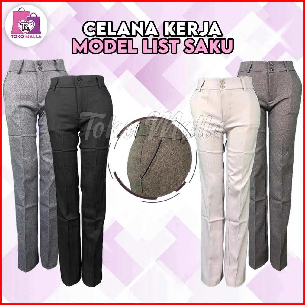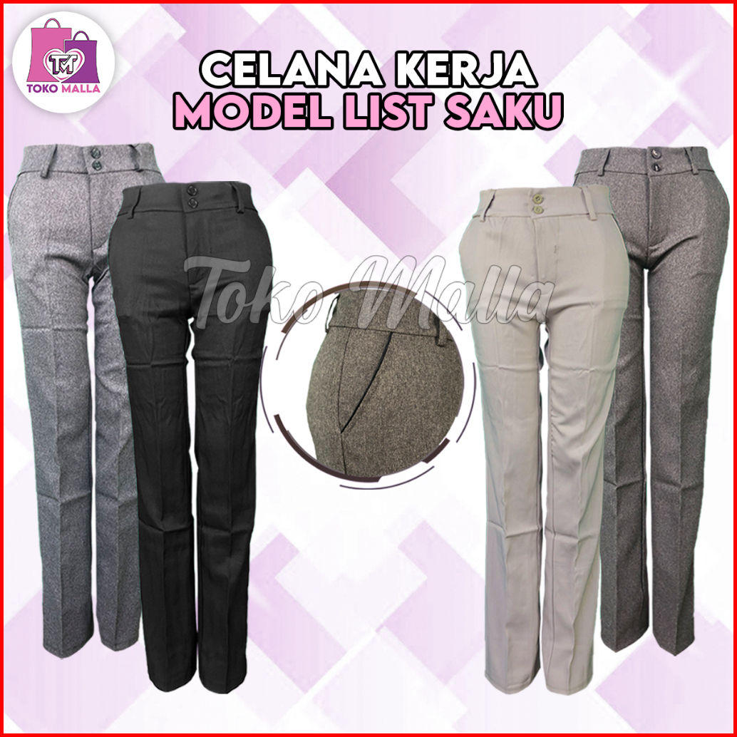 Celana Panjang Wanita Polos Pakaian Kerja Formal Kantoran Clana Bahan Cewek Kantor Dewasa Anak Kuliah Kain Wol Model Lis