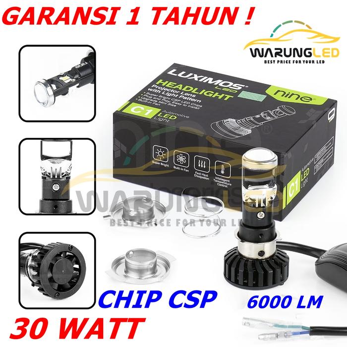 LAMPU UTAMA MOTOR MOBIL H6 H4 NINE LUXIMOS C1 - H6 CHIP CSP 30 WATT 6000 LUMENS PUTIH CAR KENDARAAN