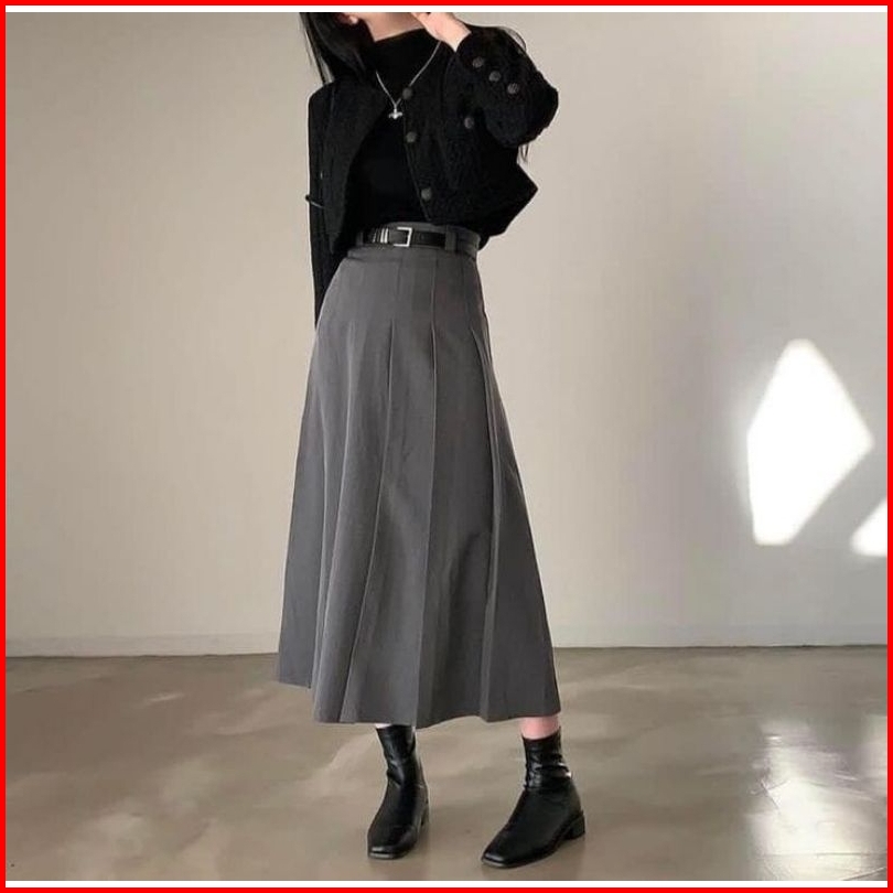 Rok Wanita Midi Korean Style - Joy Skirt Flare Terbaru - Rok Wanita Premium
