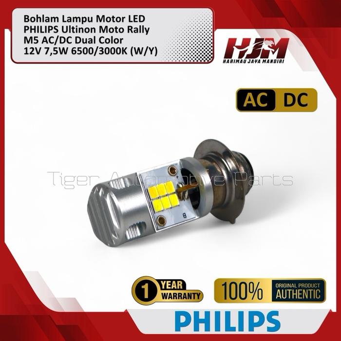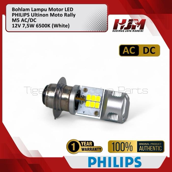 BOHLAM LAMPU LED MOTOR PHILIPS M5 T19 AC/DC 12V 7.5W ULTINON MOTO RALLY KAKI 1 ORIGINAL - WHITE