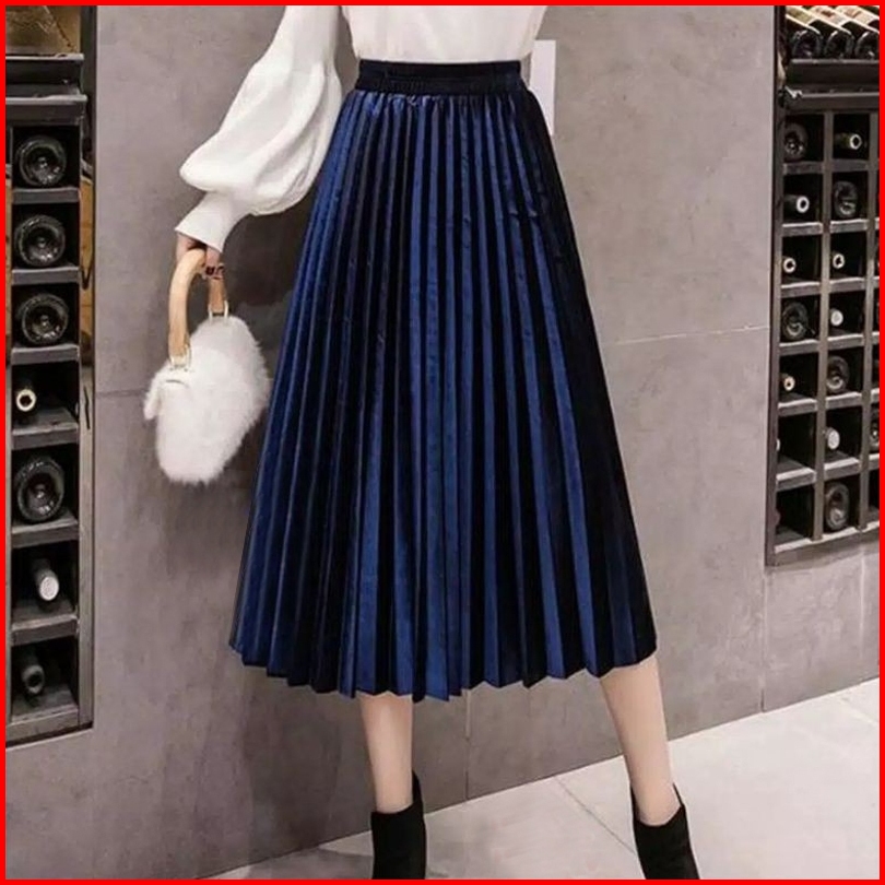 Rok Plisket Bludru Pendek 7 8 Premium Rok Bludru Velvet Premium Termurah