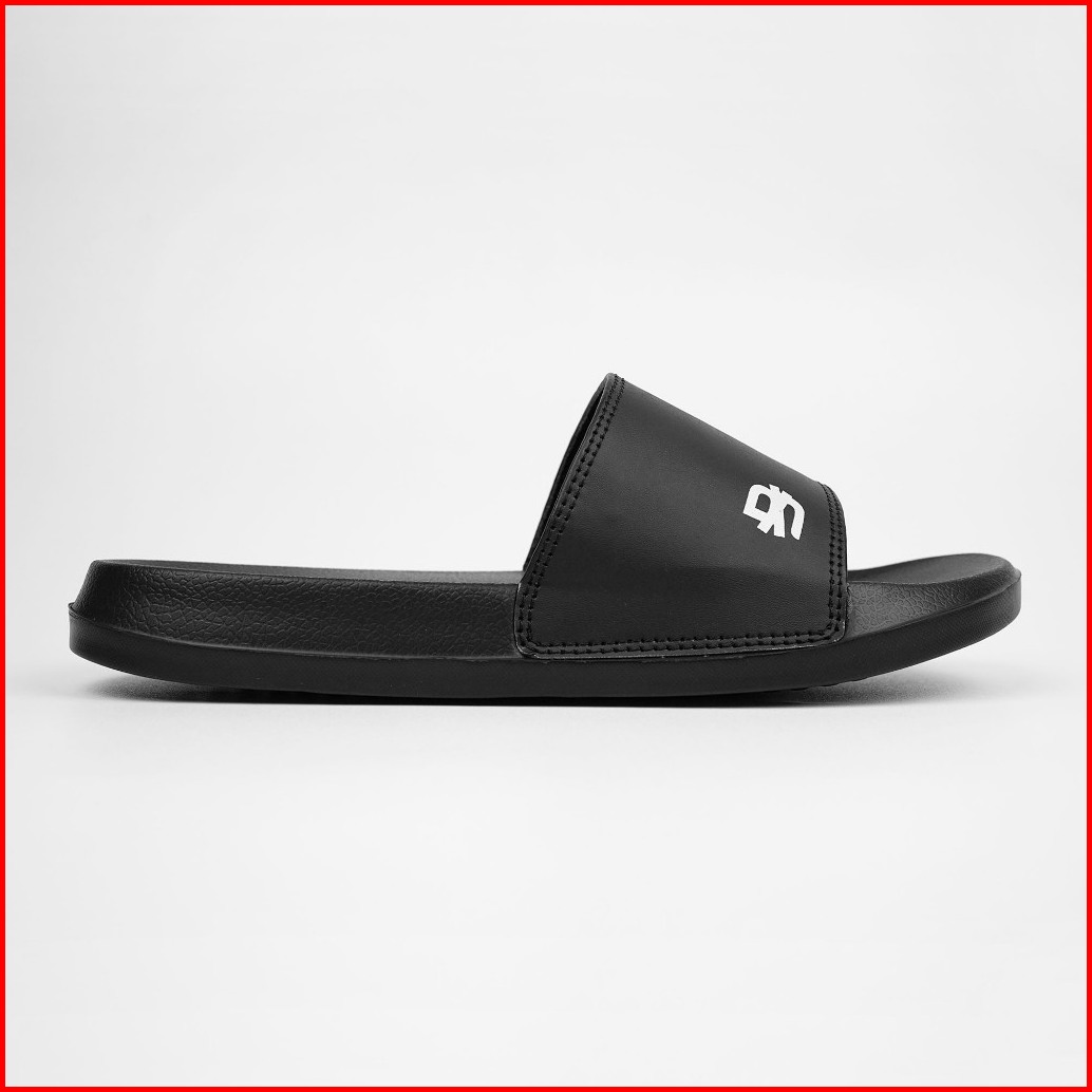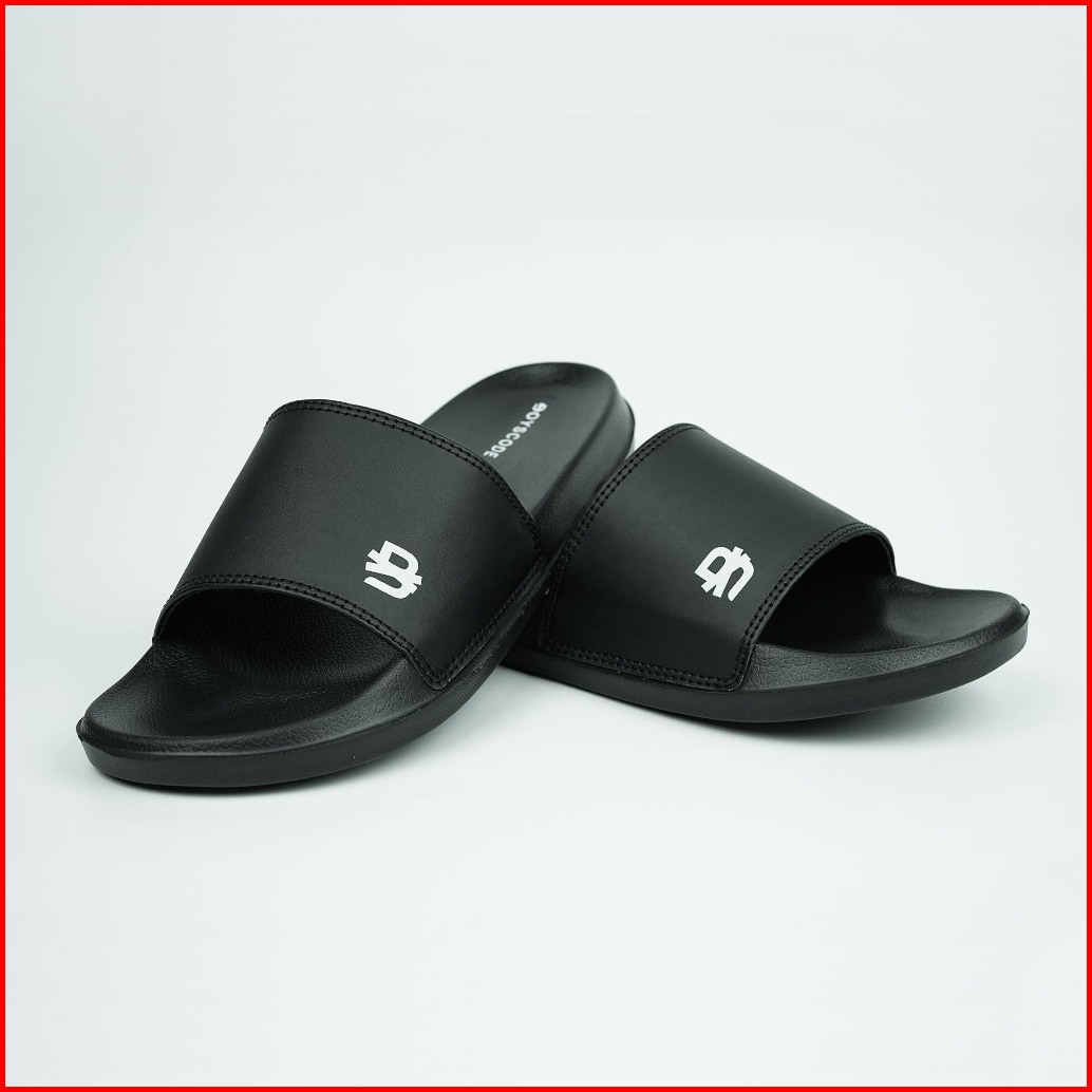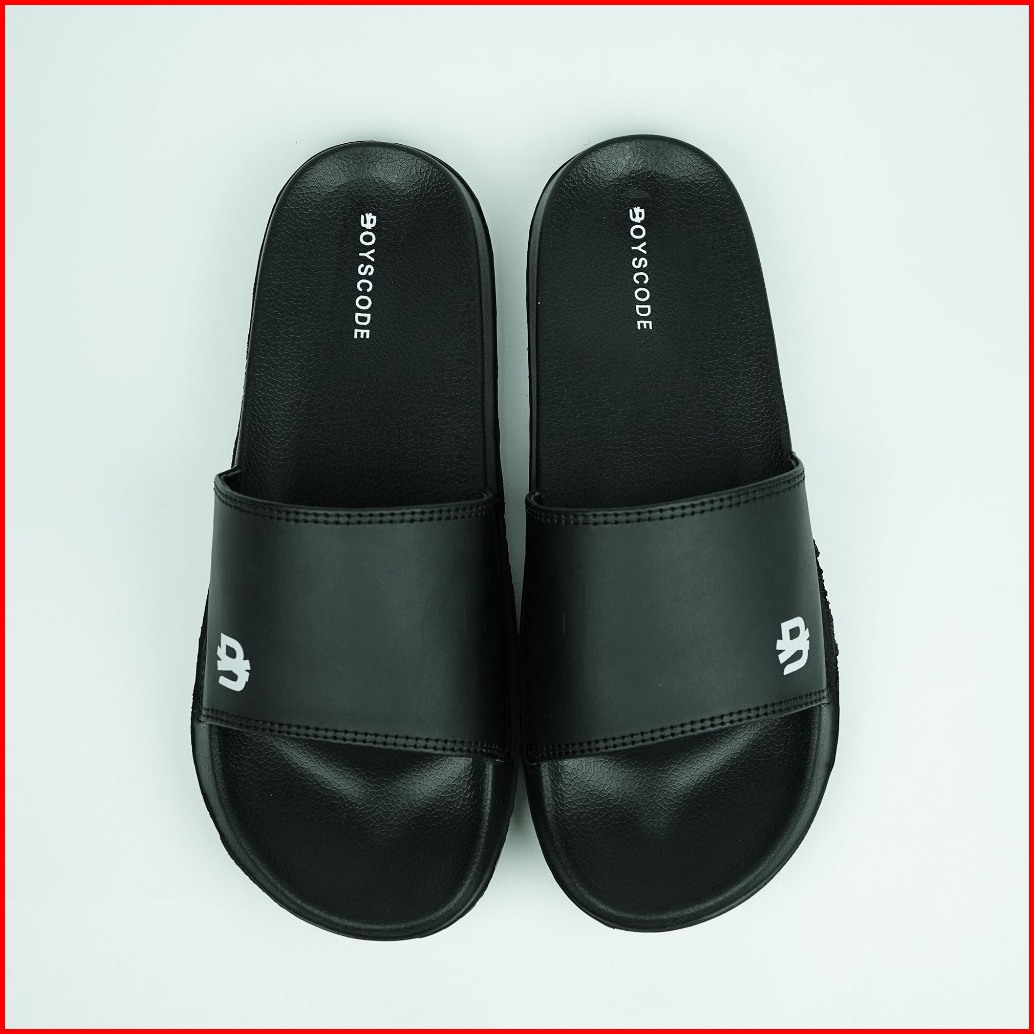 Boyscode Sendal Selop Karet Distro Pria Wanita Motif B Small Logo Hitam Fullblack