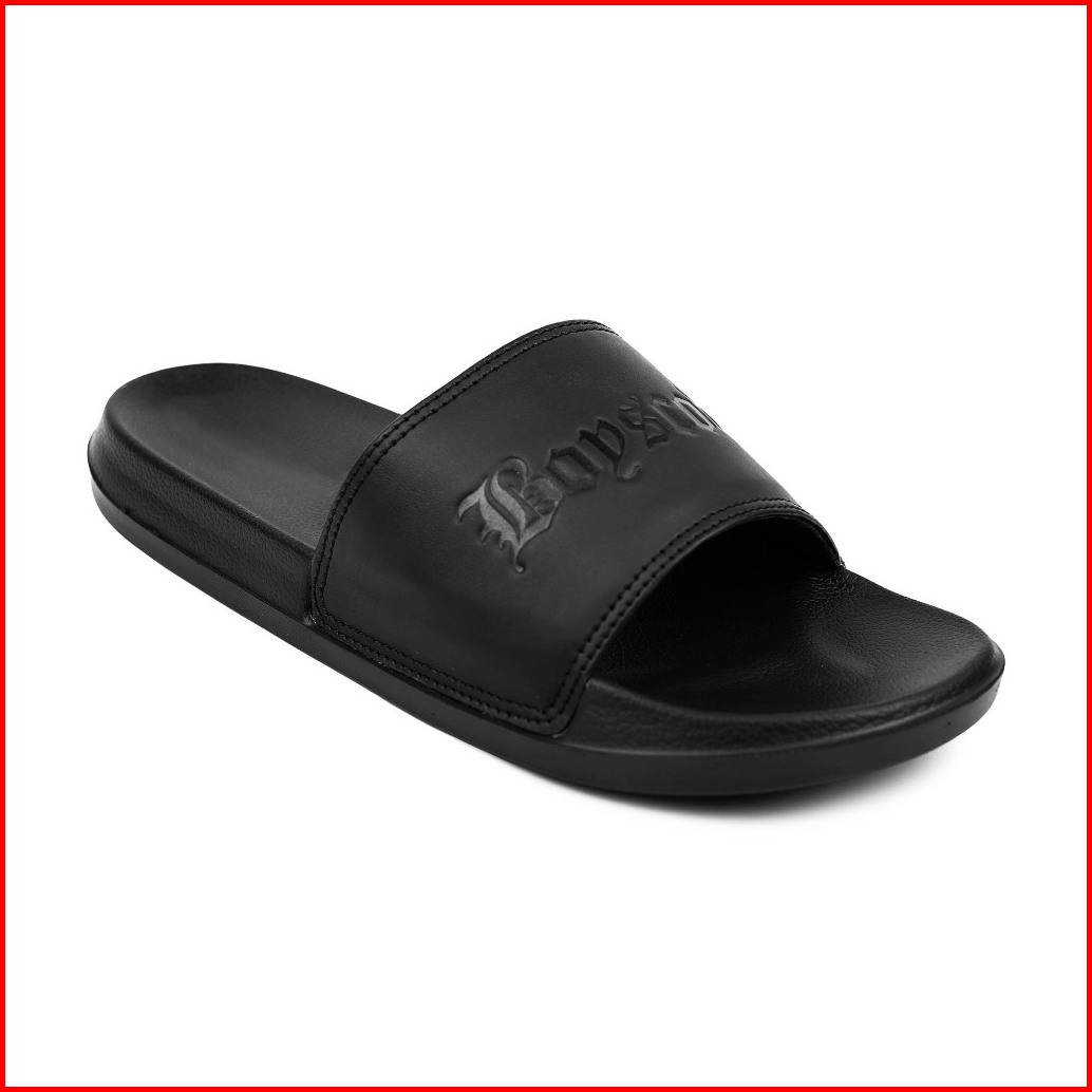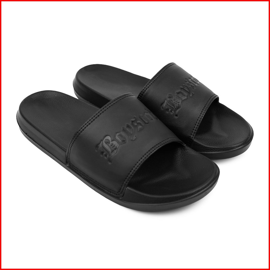 Boyscode Sendal Selop Karet Pria Wanita Classic Logo Emboss Hitam Fullblack Slop Pria Slip On Pria Slide Pria