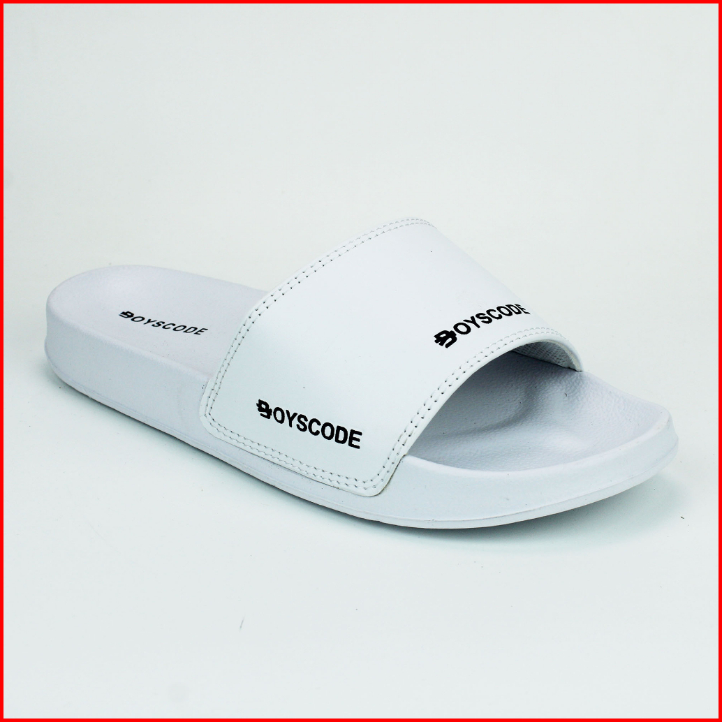 Boyscode Sendal Selop Karet Pria Wanita Mid Logo Emboss Putih Slop Pria Slip On Pria