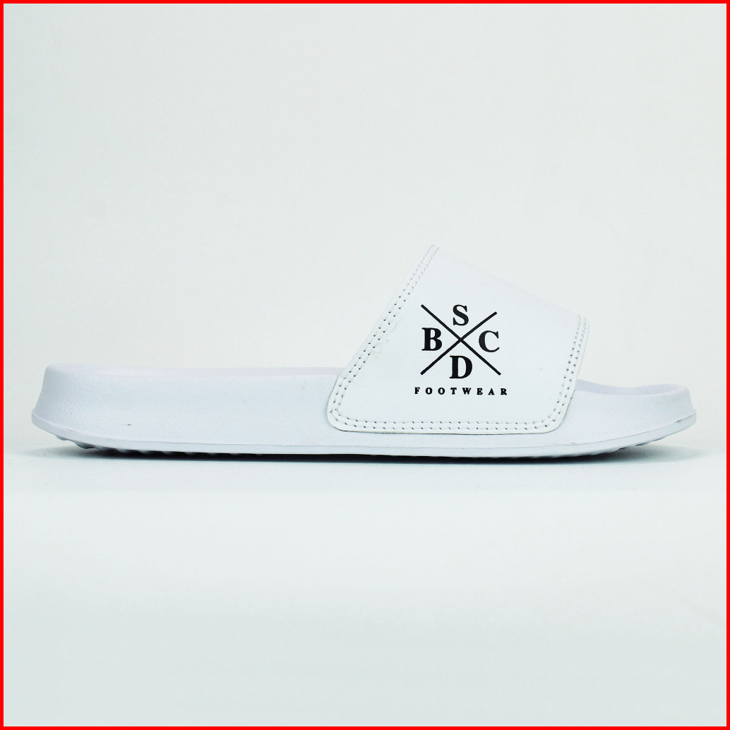 Boyscode Sendal Selop Karet Pria Wanita Motif Bscd Side Logo Putih Full White Slip On Pria