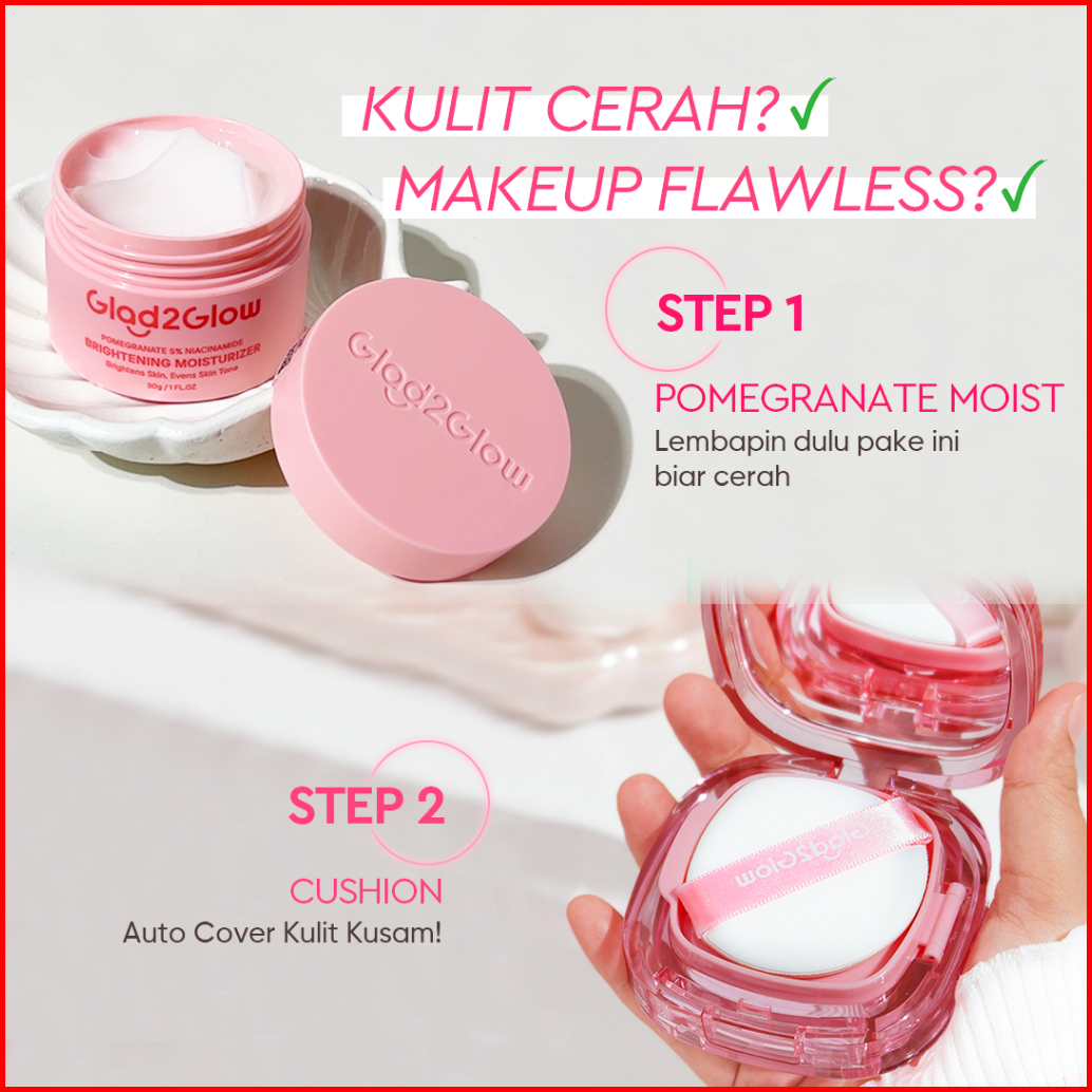 100 Ori Glad2glow Perfect Make Up Skincare 2pcs Bundle - Pomegranate Niacinamide Brightening Moisturizer Perfect Blurrin