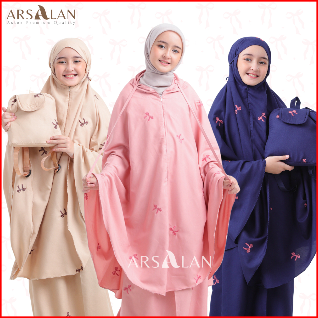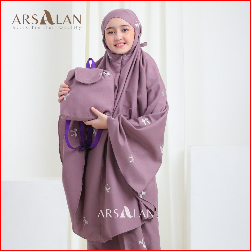 Arsalan - Mukena Anak Tas Ransel Katun Mikro Bordir 2in1 Travel 2-12 Tahun Coquette Series