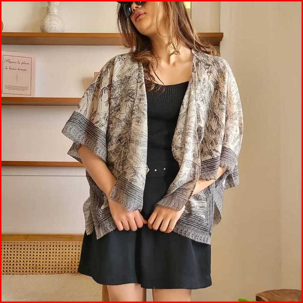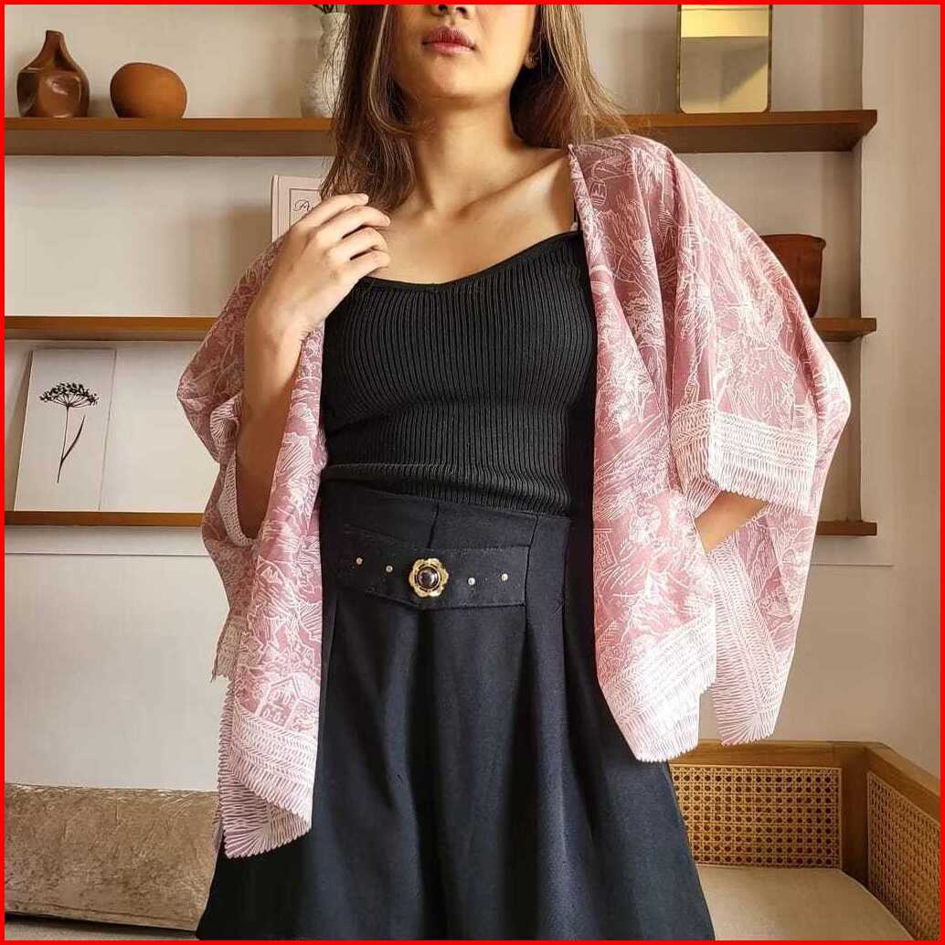 Outer Scarf Batwing Full Motif Lengan Model Kelalawar Outwear Best Seller Cardigan Arwen Kekinian