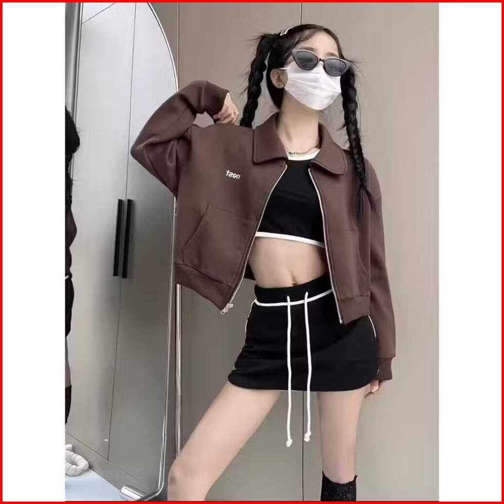 Jaket Wanita - Nest Collar Crope Jaket Wanita Kekinian Jaket Sweater Wanita Korean Style