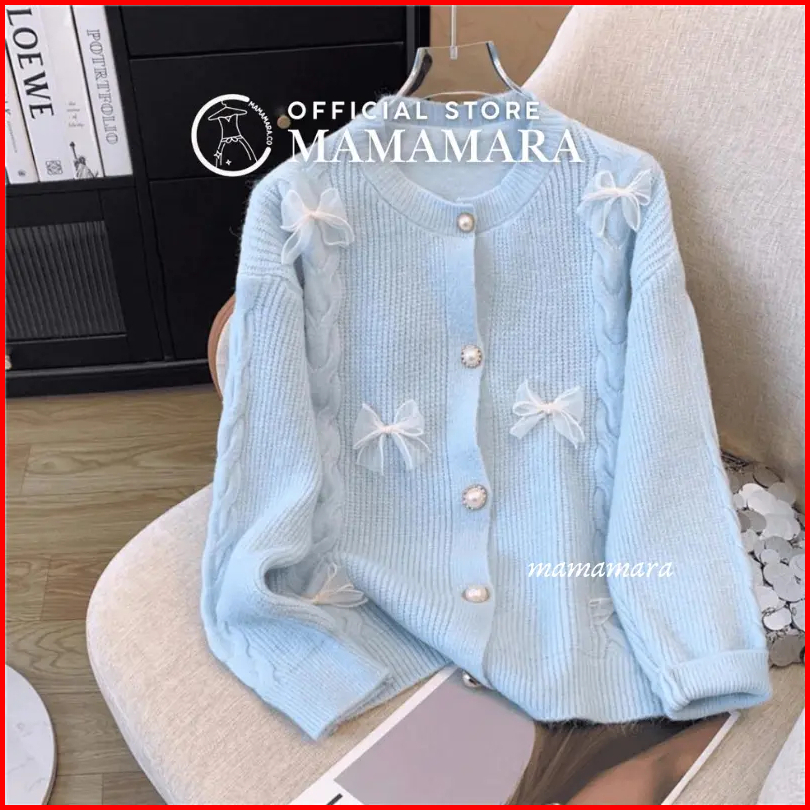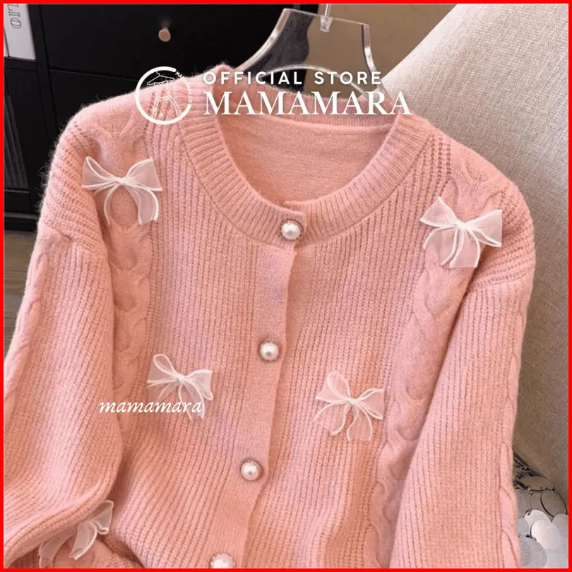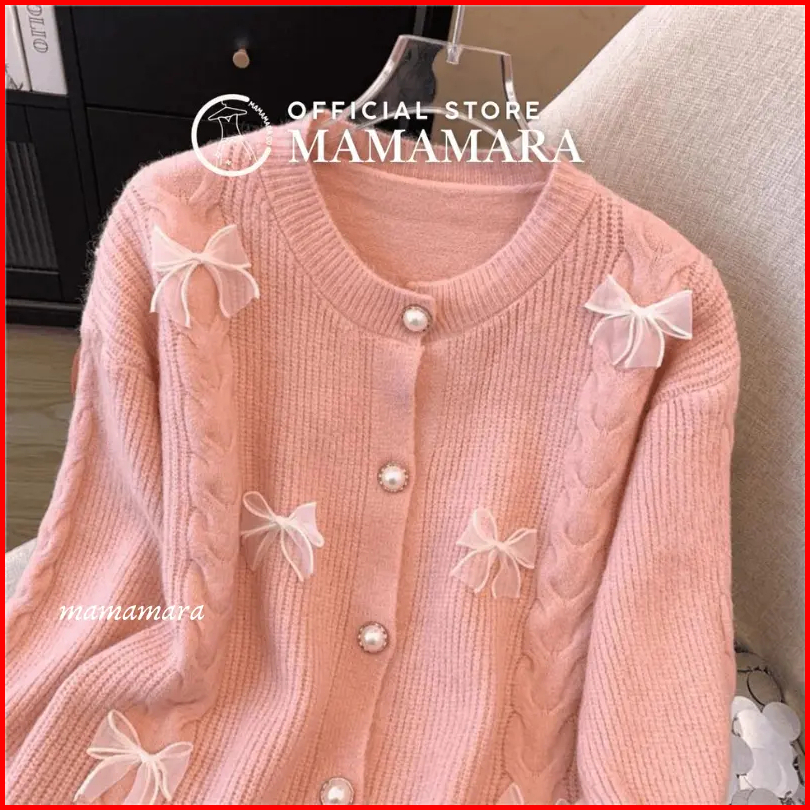 Mamamara - Cardigan Pita Imut Coquette Ribbon Atasan Wanita Lengan Panjang Longsleeve Knitwear