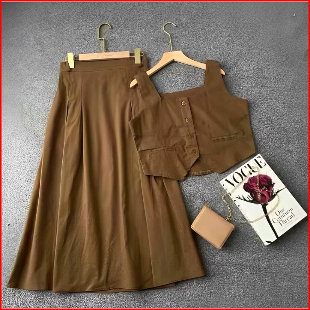 Setelan Vest Dan Rok Korean Style One Set Rompi And Skirt Blazer Wanita Kekinian Premium