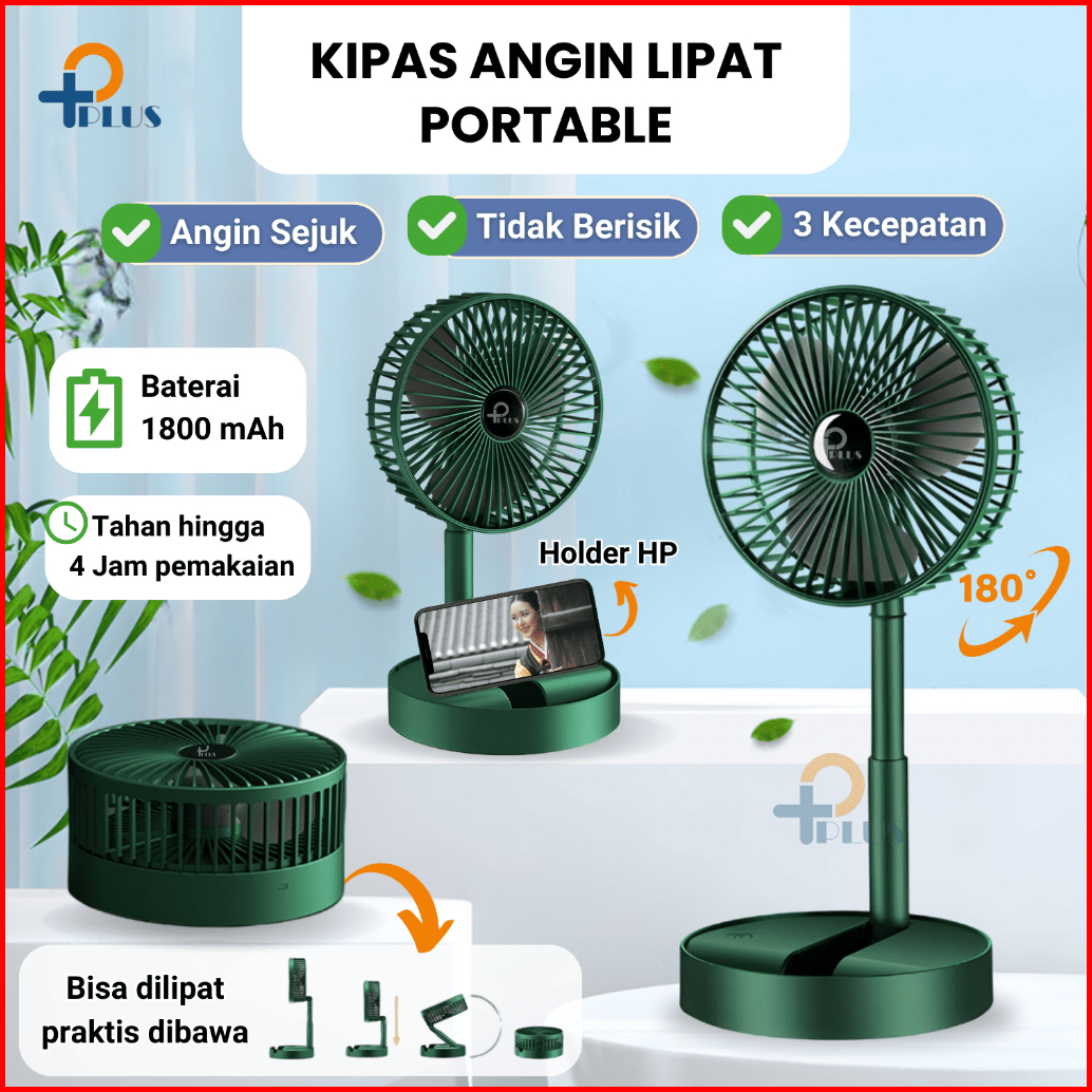 Pplus Kipas Angin Lipat Protabel Baterai 1800mah Kipas Angin Protabell Model Meja Putar 180