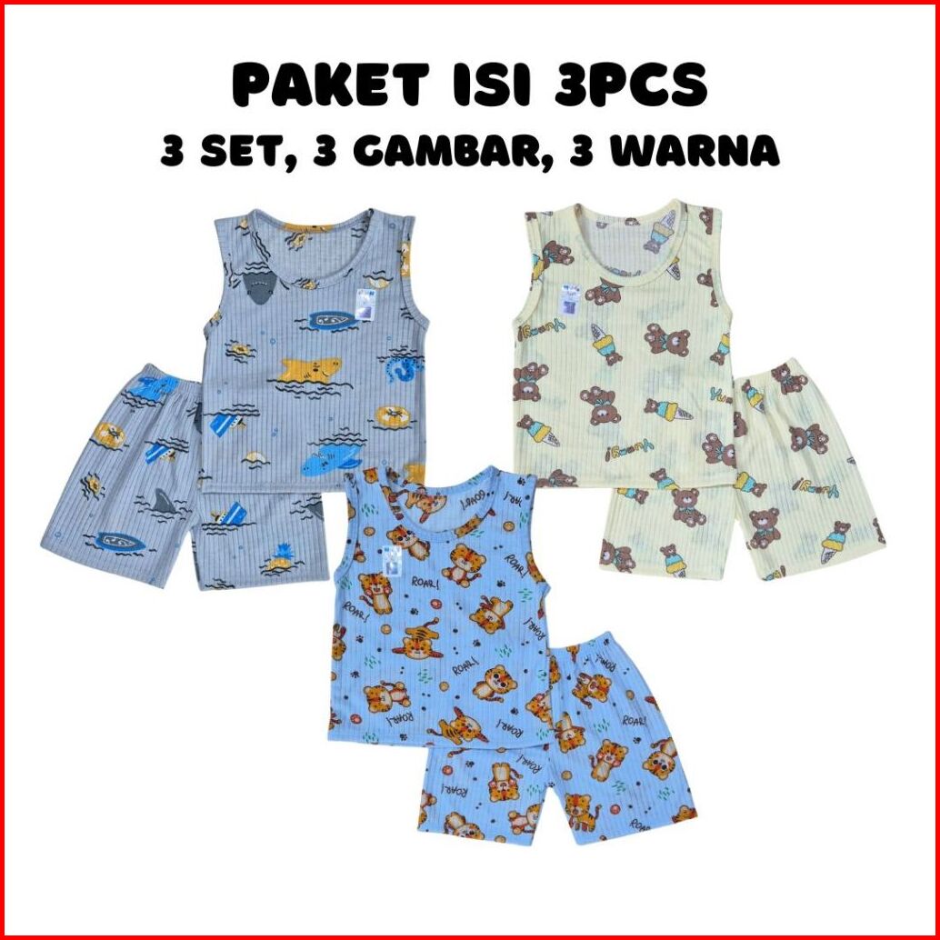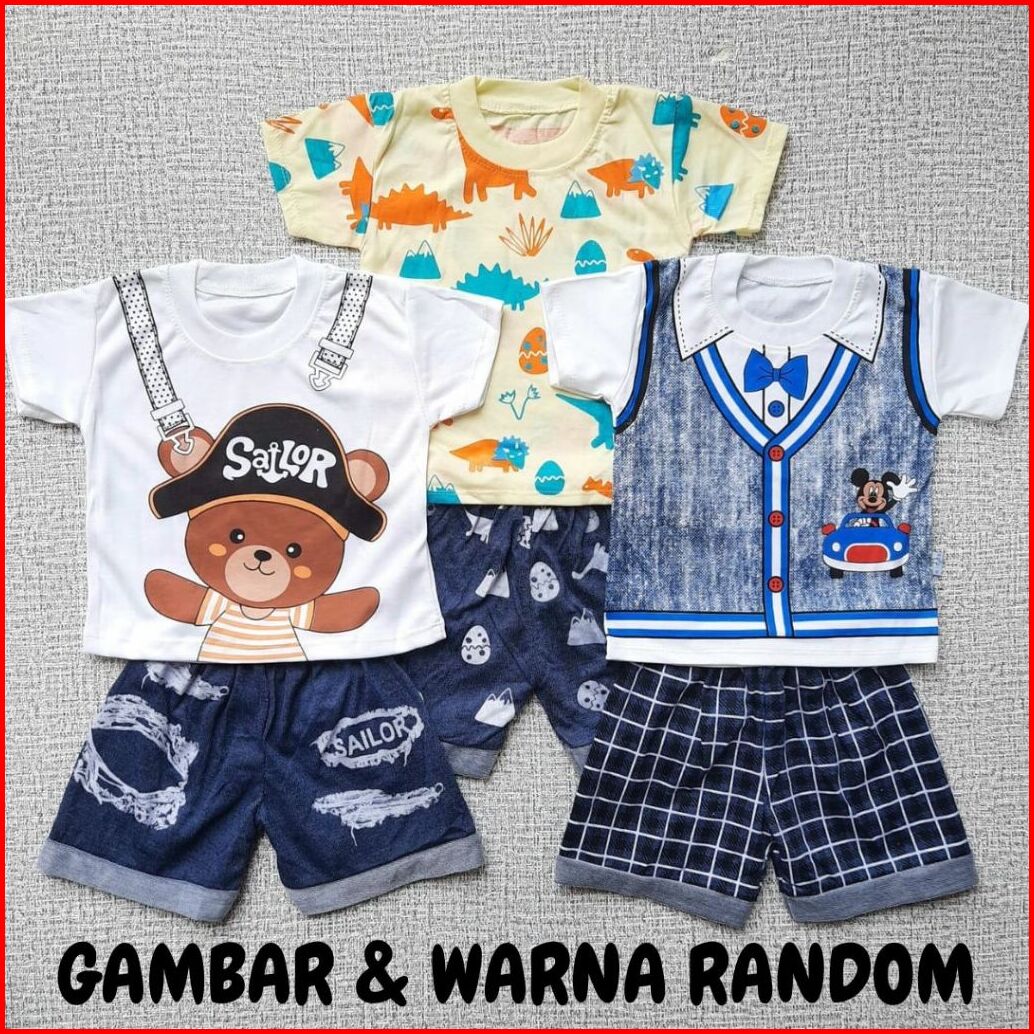 Terlaris Paket Bundling 3 Pcs Setelan Anak Laki Laki Usia 0-2 Tahun Baby Keyla