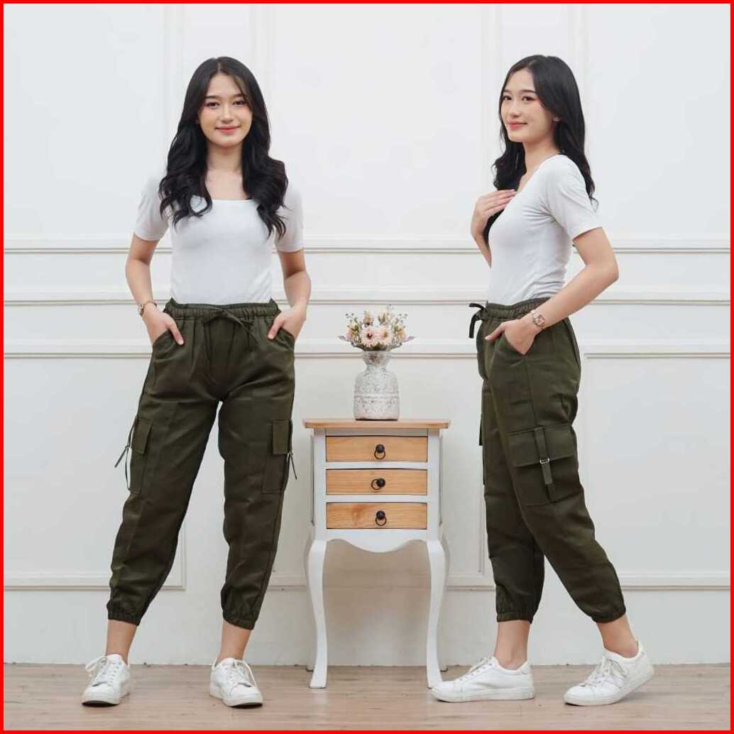 Celana Cargo Joger Tactical Wanita Panjang Joger Cargo Pants Cewek Kekinian Xxxl Super Jumbo Muat Sampai 85 Kg