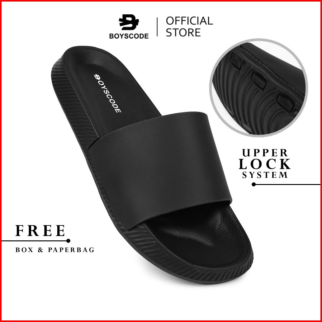 Boyscode Sendal Selop Flip Flop Polos Hitam Pria Wanita Slide Slip On Jepit