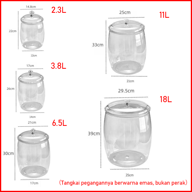 Wadah Plastik Kedap Udara Kapasitas Besar Toples Transparan Anti Bocor Tempat Penyimpanan Rempah Dapur Bekas Makanan Rem