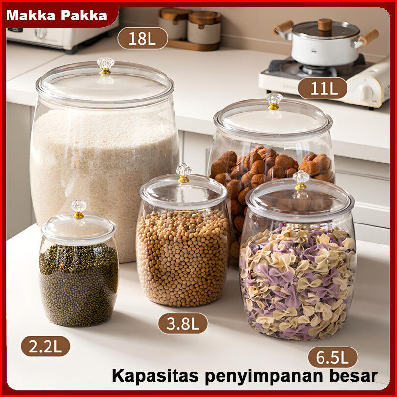 2.3l 3.8l 6.5l 11l 18l Wadah Plastik Kedap Udara Kapasitas Besar Toples Transparan Anti Bocor Tempat Penyimpanan Rempah