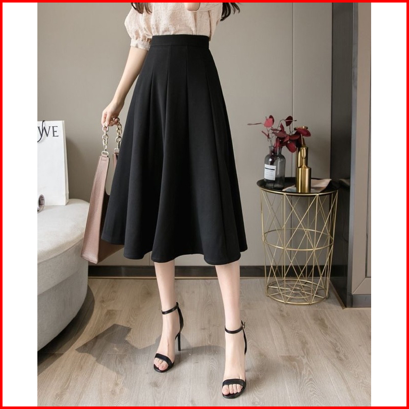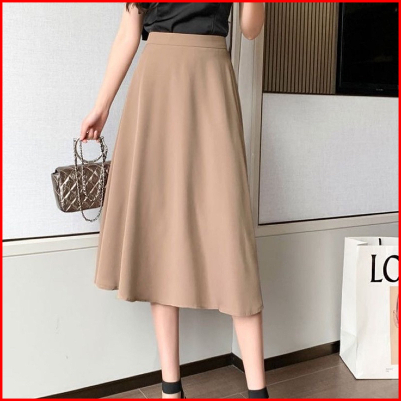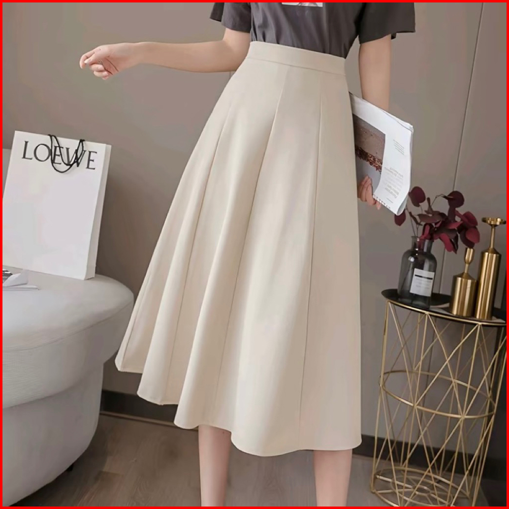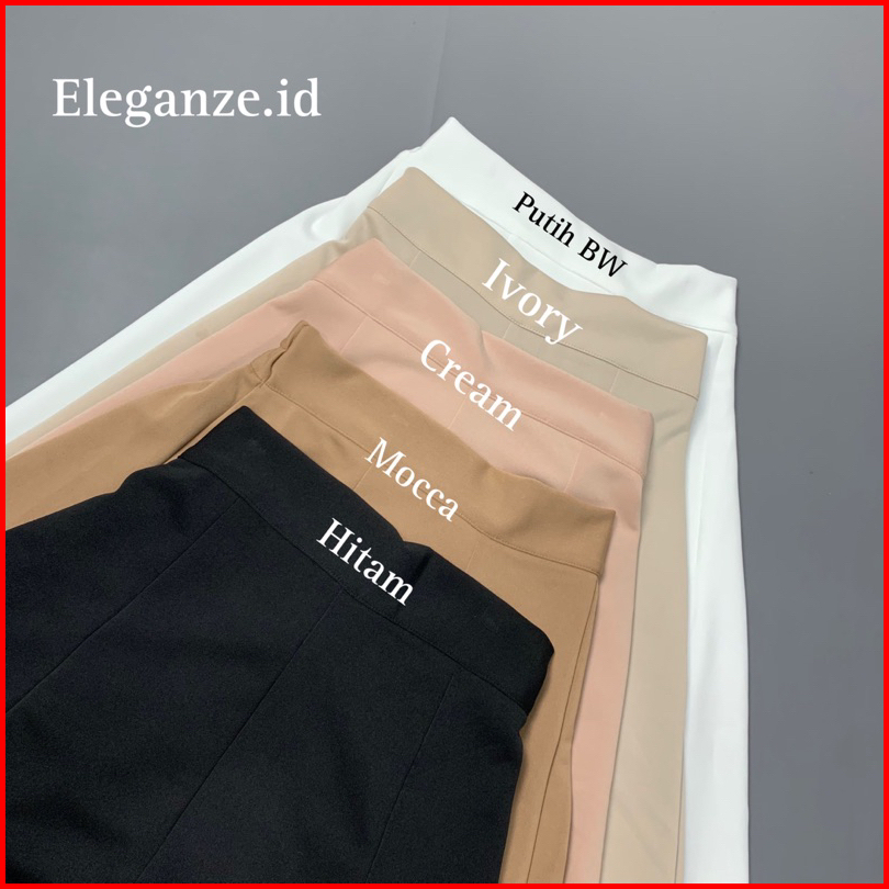 Eleganze - Rok Audy Midi Skirt Korean Scuba Wanita Anti Kusut - Premium Casual Kantoran Karet