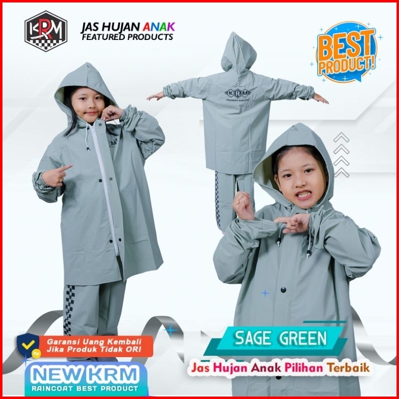 Krm Original Jas Hujan Anak Kecil 1 - 16 Tahun Mantel Tebal Motif Kotak Ter Baik Anti Air Jashujan