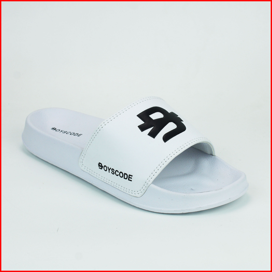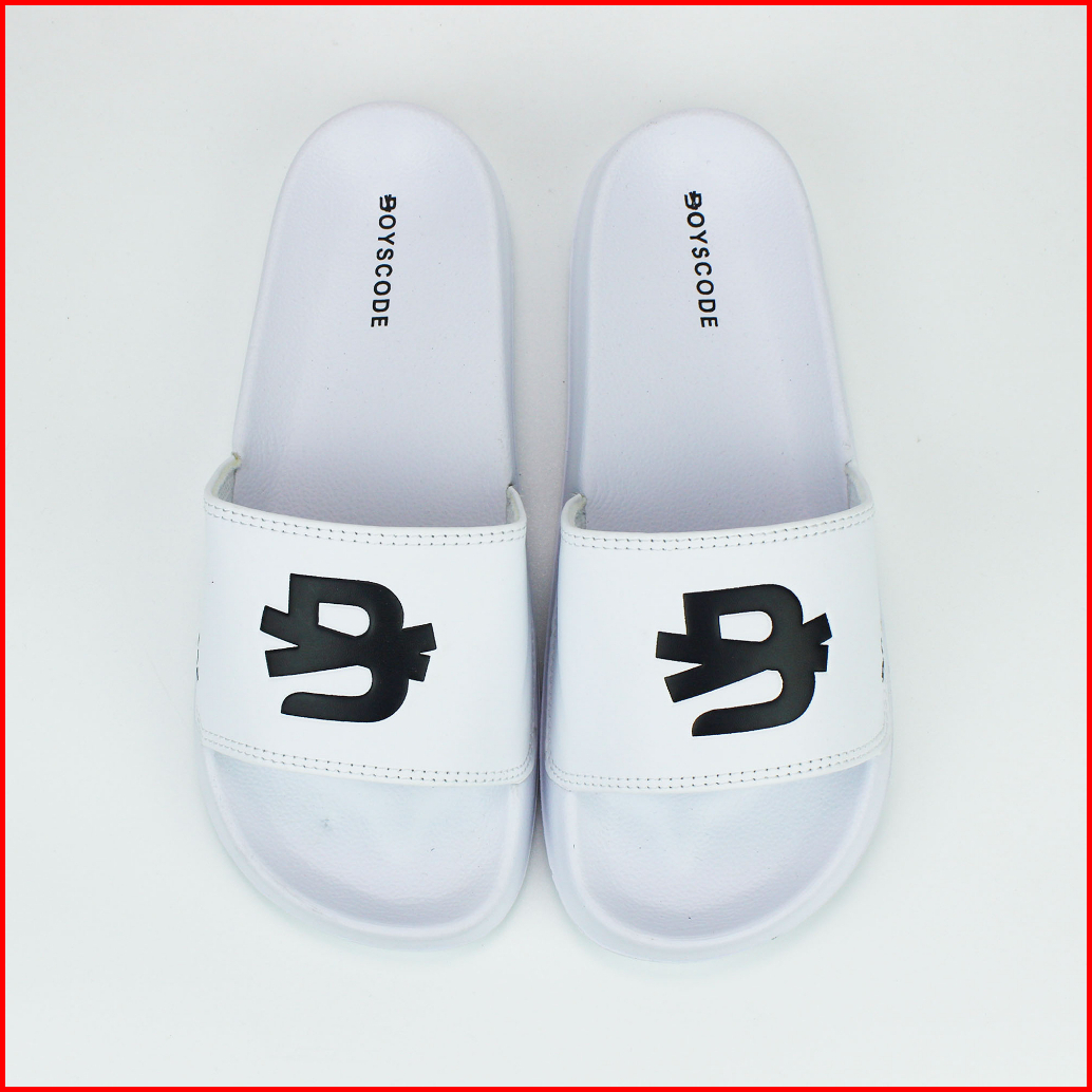 Boyscode Sendal Selop Karet Pria Wanita Motif Big Logo Putih Slip On Pria Slide Pria