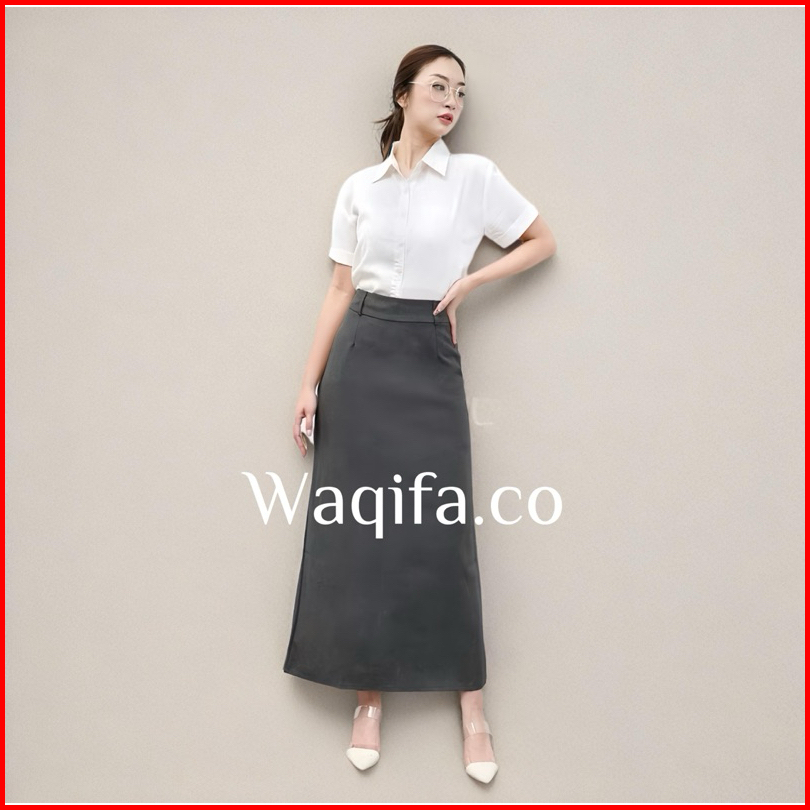Rok Kerja Wanita Kantor Rok A Line Span Polos Panjang Wanita