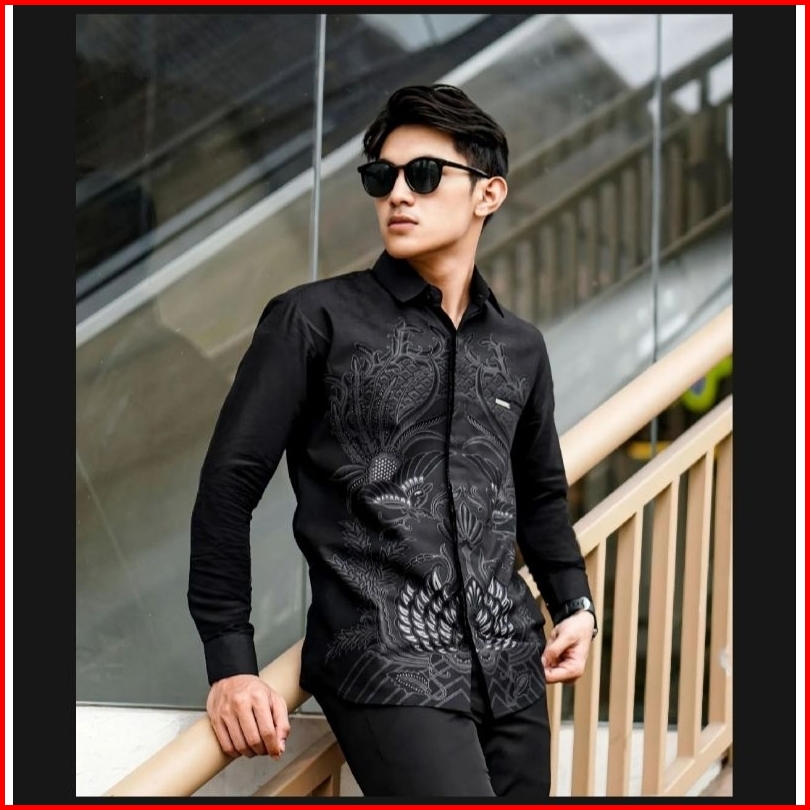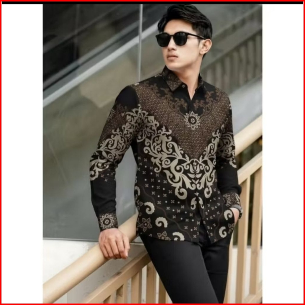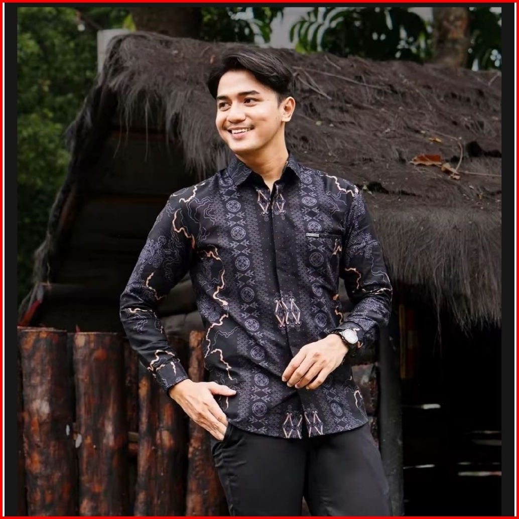 Kemeja Batik Pria Modern Hitam Elegan-baju Batik Lengan Panjang Fashion Casual Kantor