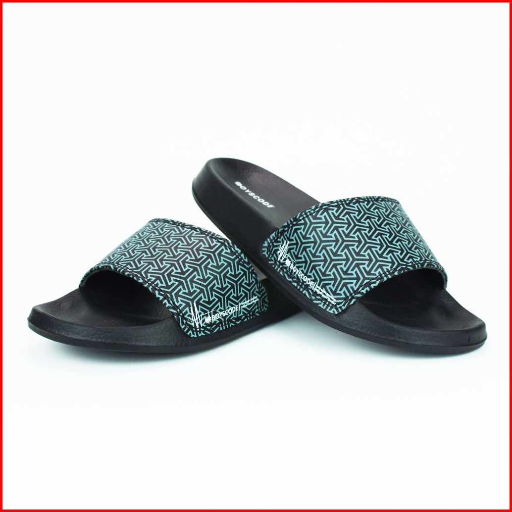 Boyscode Sendal Selop Pria Wanita Distro Triangle Motive Black Grey Sendal Slip On Pria Sendal Slide Pria