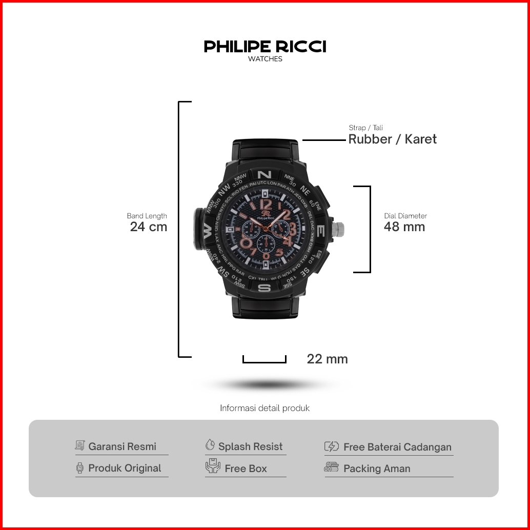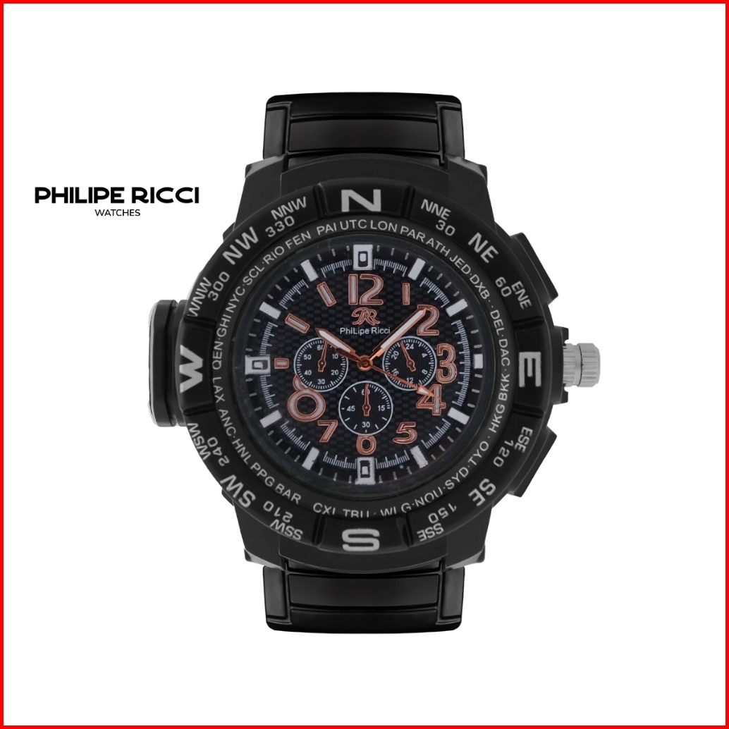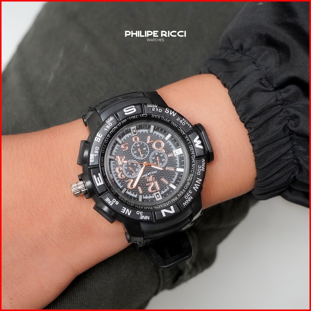Philipe Ricci Jam Tangan Pria Karet Hitam Analog Quartz Keren Original Terbaru 1801a Men Watches