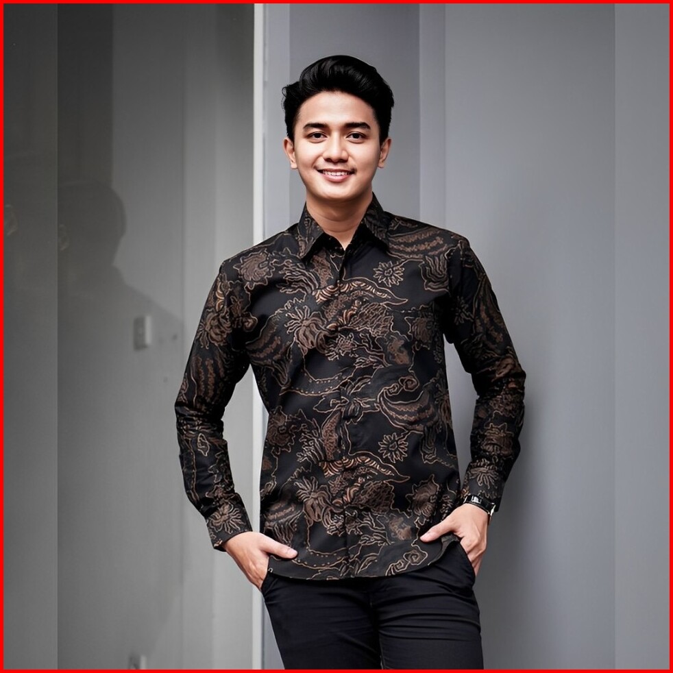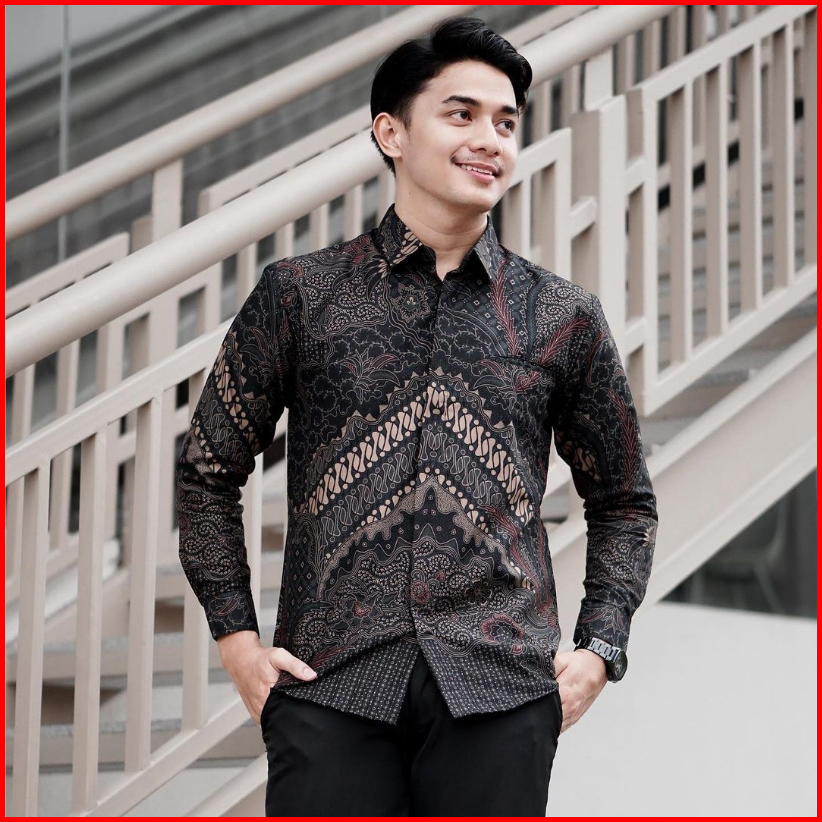 Kemeja Batik Pria Lengan Panajang Size M L Xl Xxl Bswart Batik Hrb026 Kenongo Hem Panjang Padi