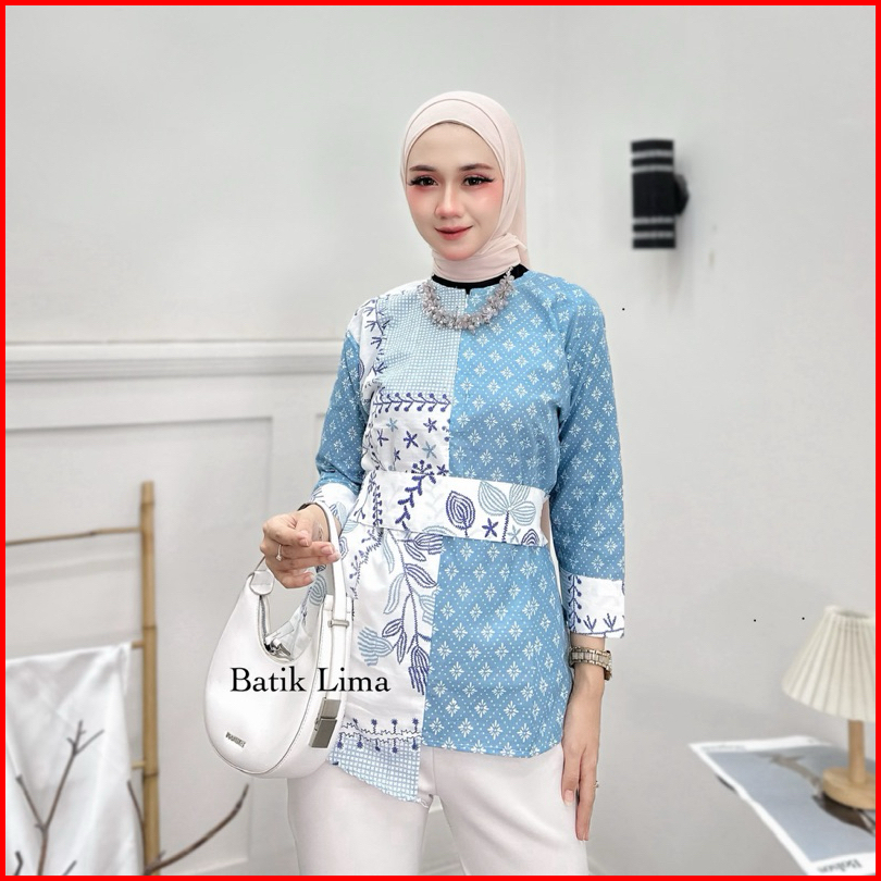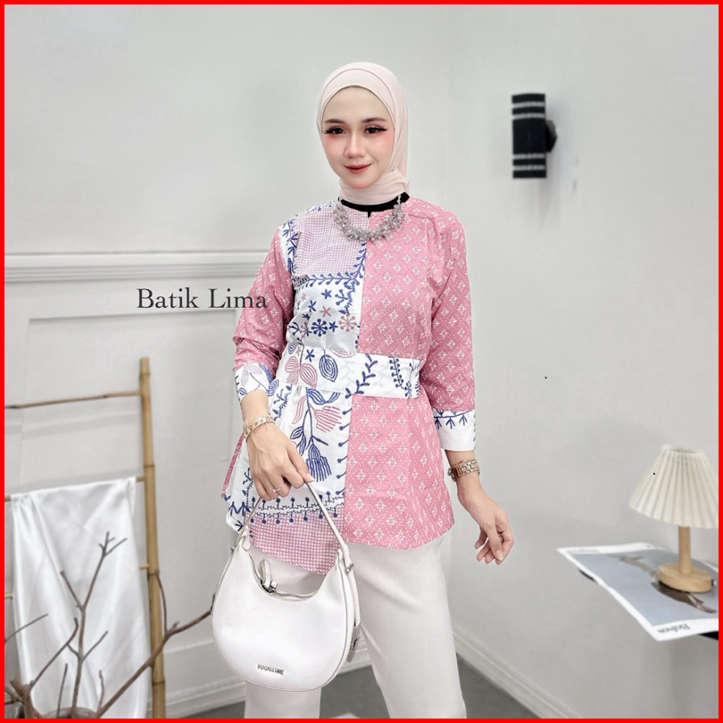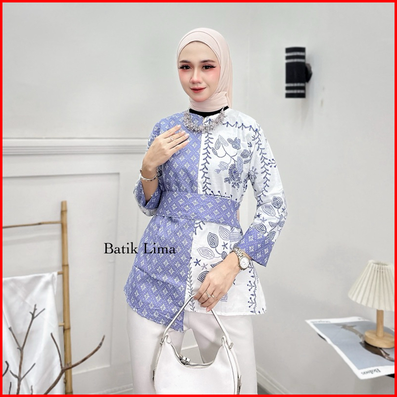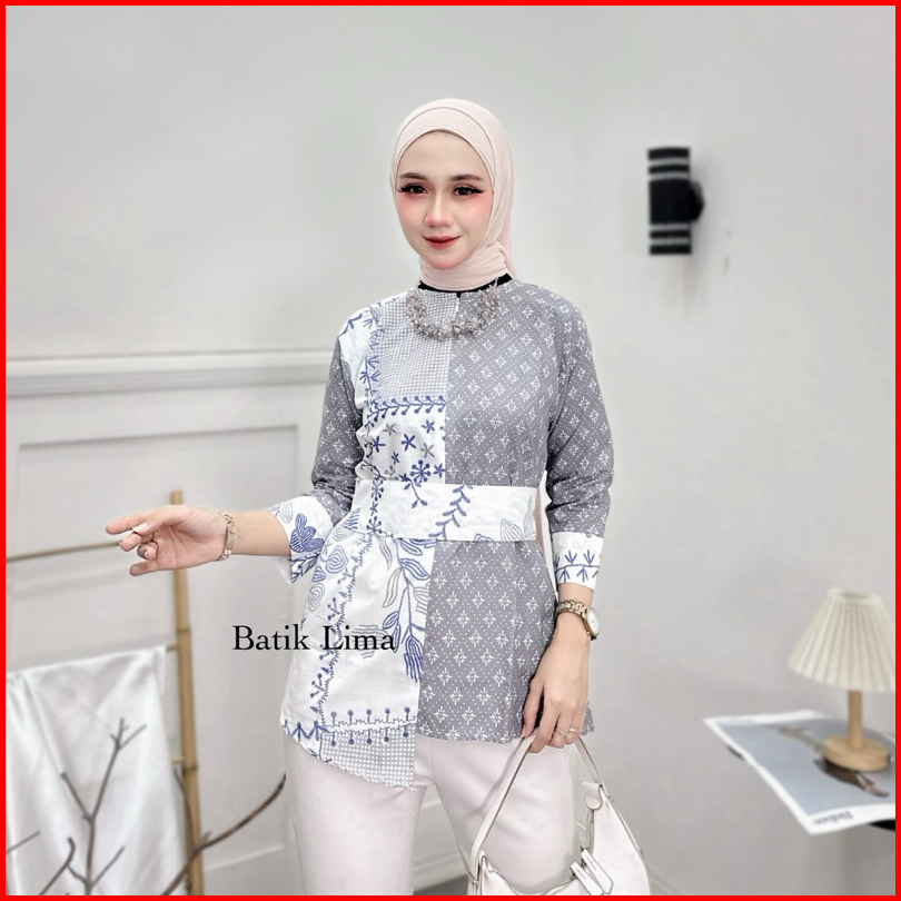 Atasan Batik Wanita Modern Blouse Batik Kantor Wanita Terbaru Kembang Bordir