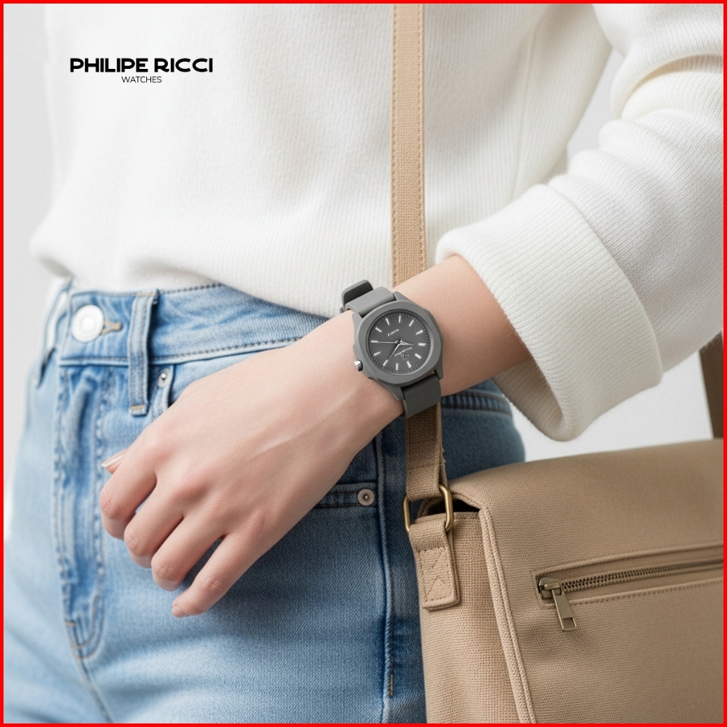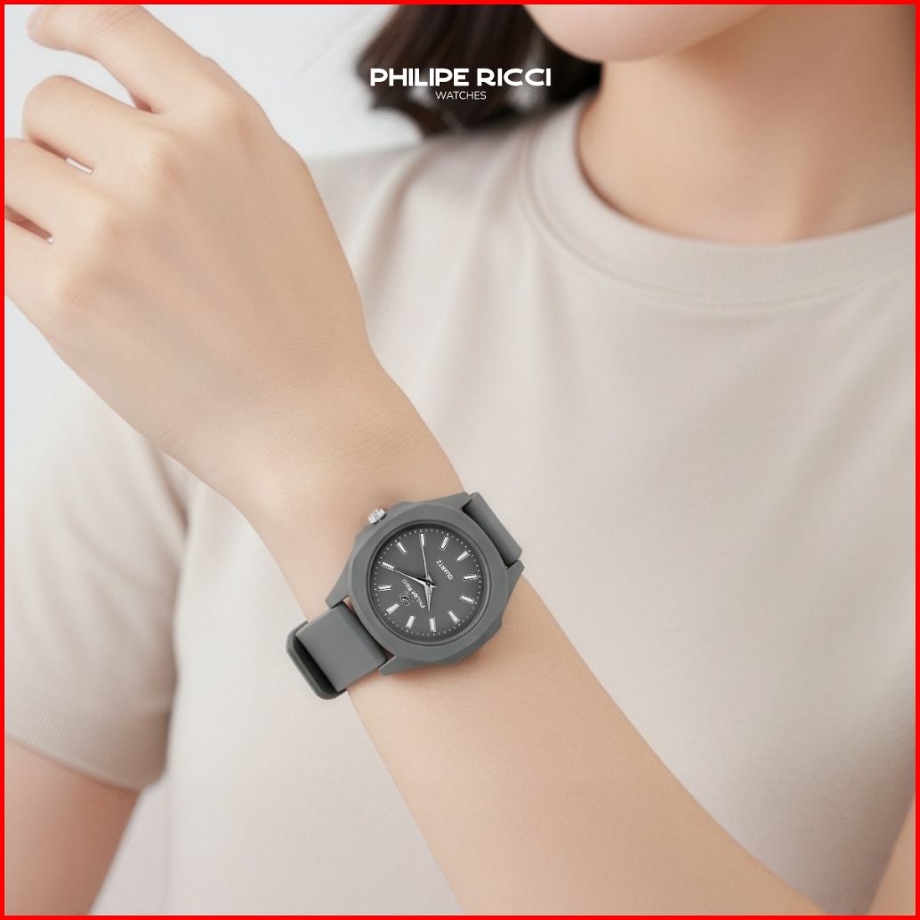 Philipe Ricci Jam Tangan Wanita Karet Hitam Kecil Simple Terbaru Original Korean Style 6996 Free Box