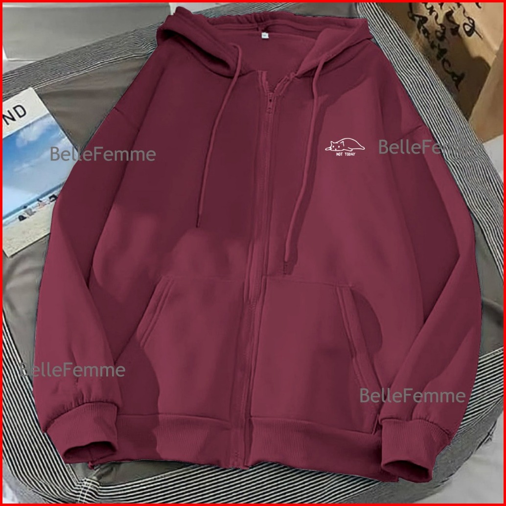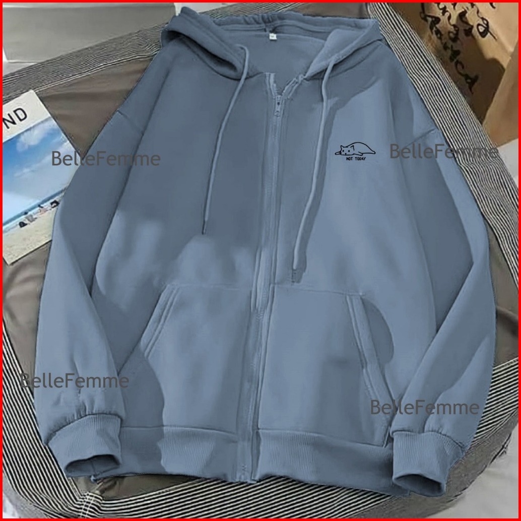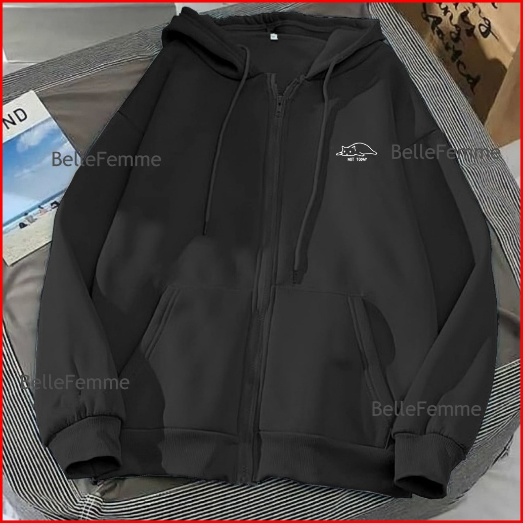 Zipper Wanita Not Today Cat Dewasa M L Xl Xxl Xxxl Xxxxl 3xl 4xl Sweater Hoodie Kekinian Style Ootd Kece Jaket Zipper Re