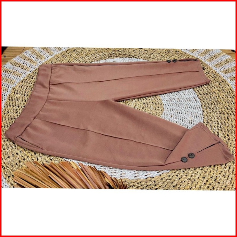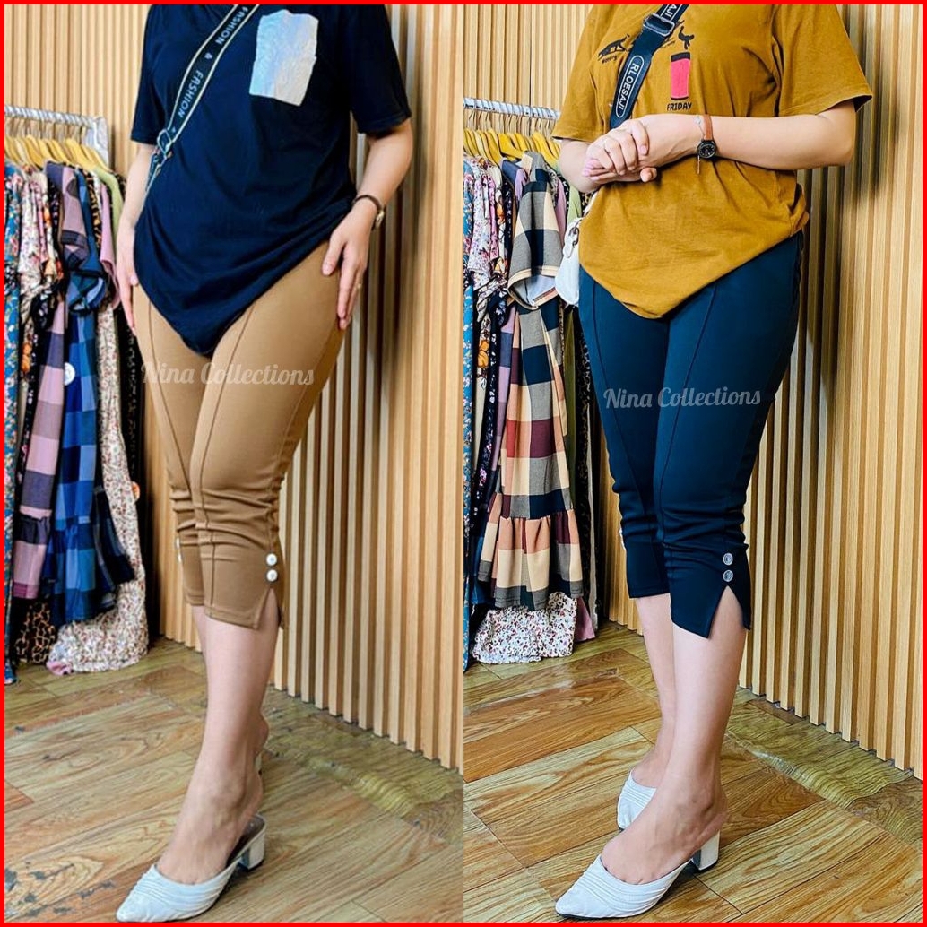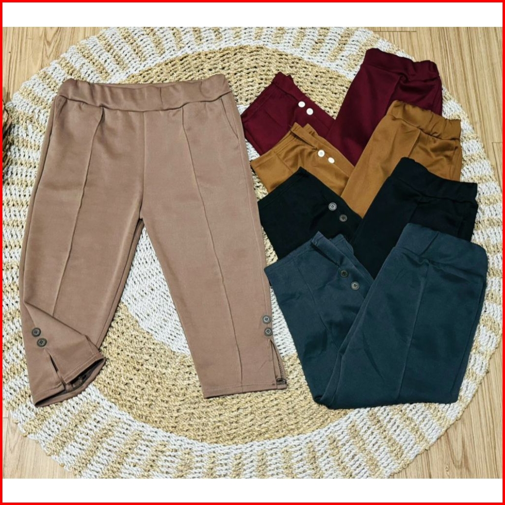 Polos Celana 3 4 Kancing Jumbo Wanita Celana Polos Cewek Big Size Celana Kain Scuba Lipit Celana Santai Celana Harian Ce