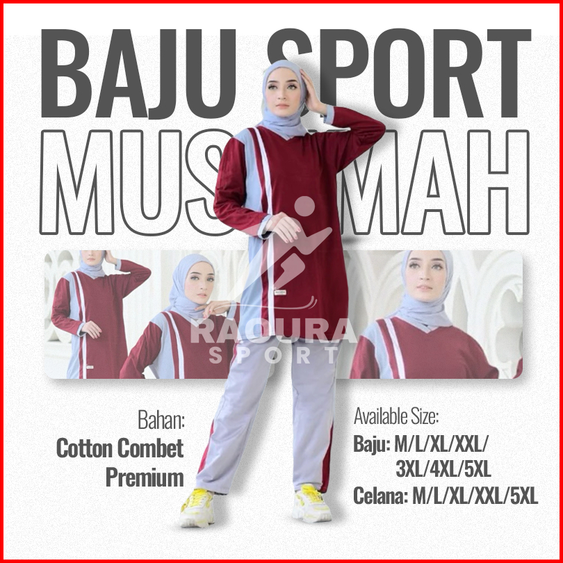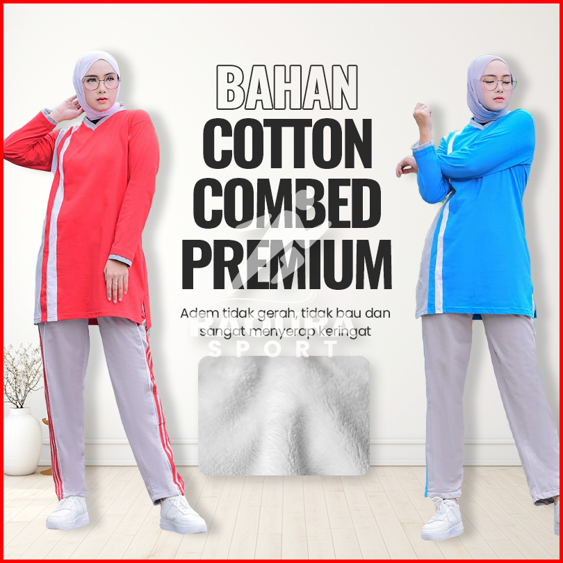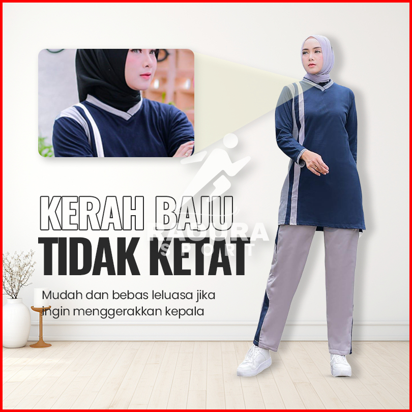 Setelan Olahraga Wanita Muslimah Tunik Bahan Katun 20s Tunic Olahraga Wanita Tunic Sport