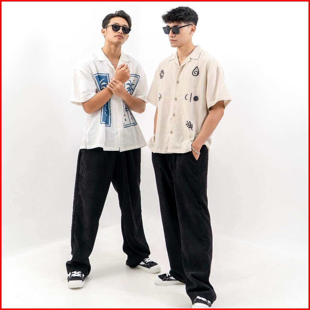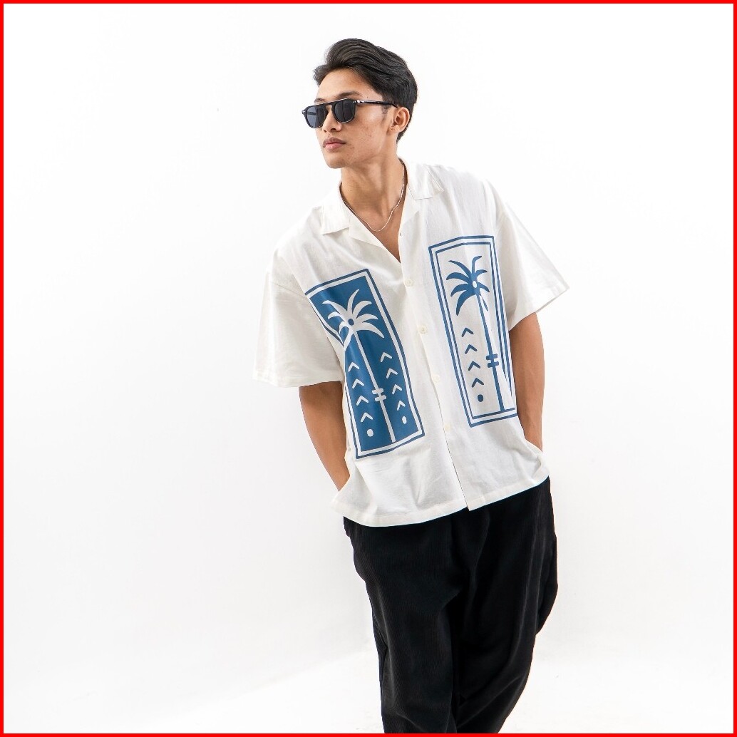 Volume 3 Oversize Printed Shirt Kemeja Print Linen Pria Bowling Collar Shirt