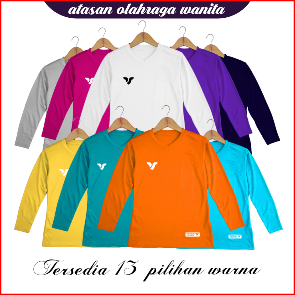 Baju Olahraga Atasan Wanita Lengan Panjang Kaos Jersey Dry Fit Running Zumba Lari Yoga Senam Fitness Volly Futsal Sport