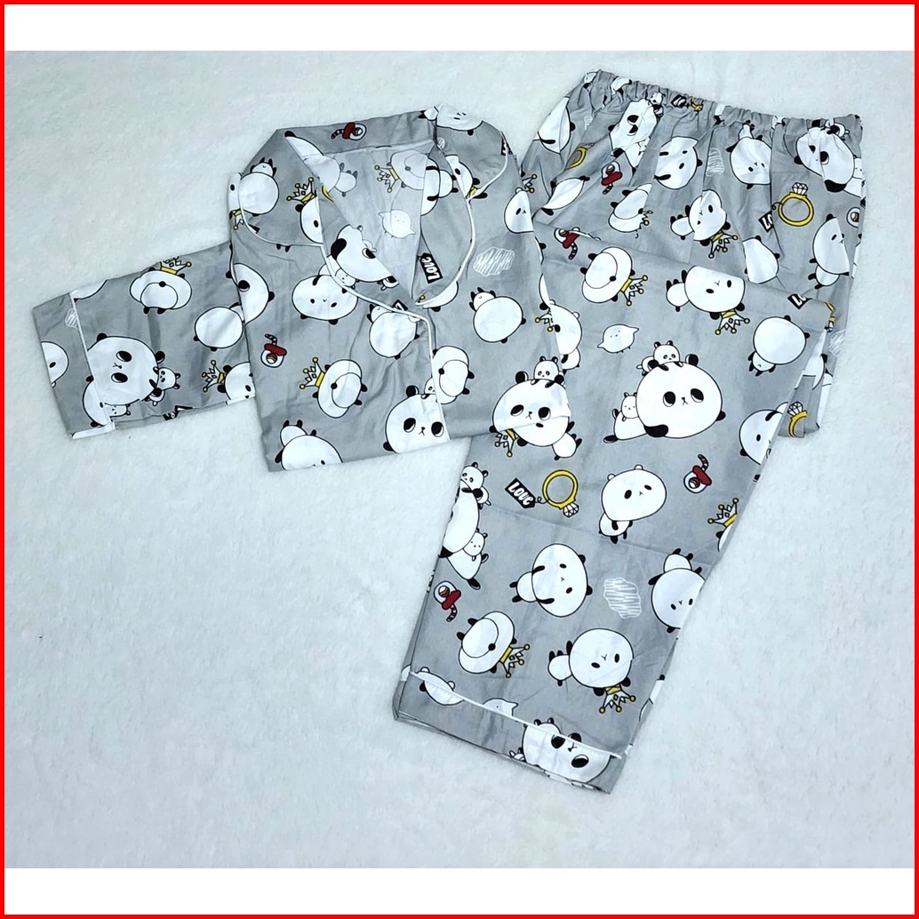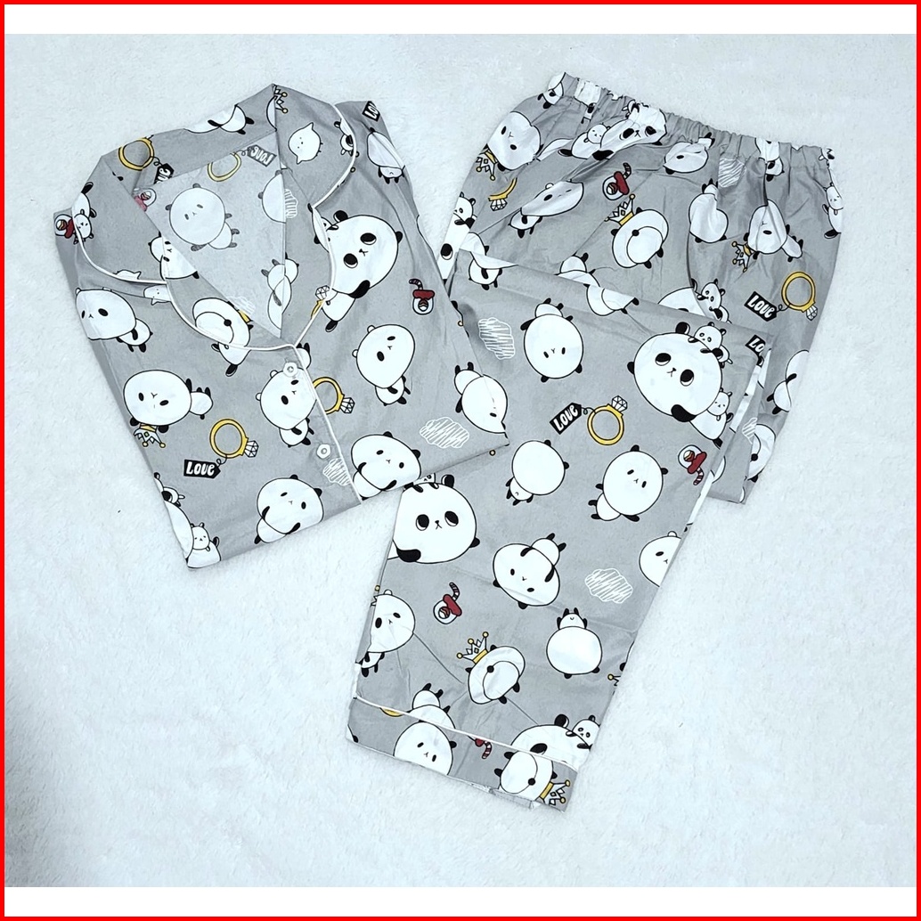 Setelan Baju Tidur Motif Panda Gemoy Piyama Wanita Cewek Kekinian