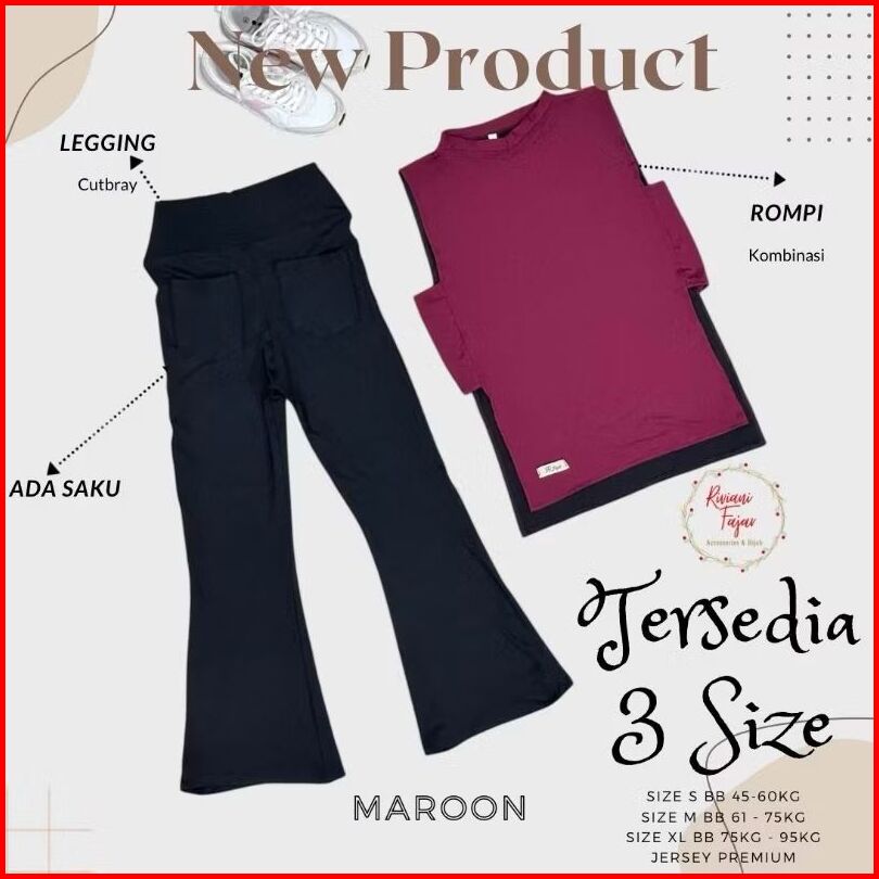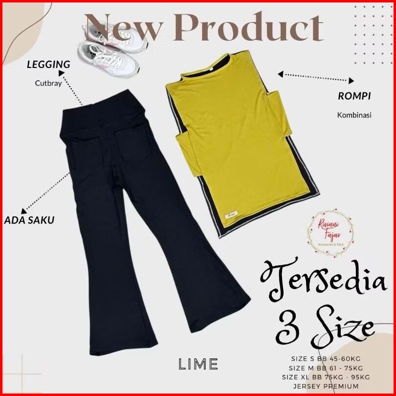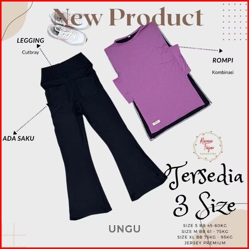 One Set Baju Olahraga 2 Warna Kombinasi Jersey Celana Cutbray Wanita Muslim Sporty