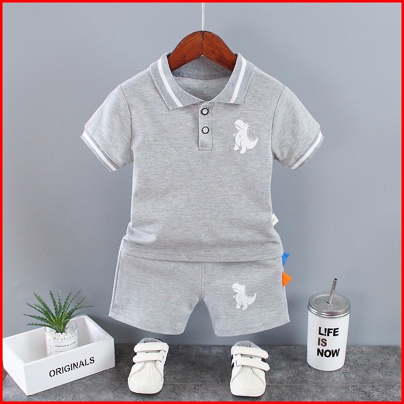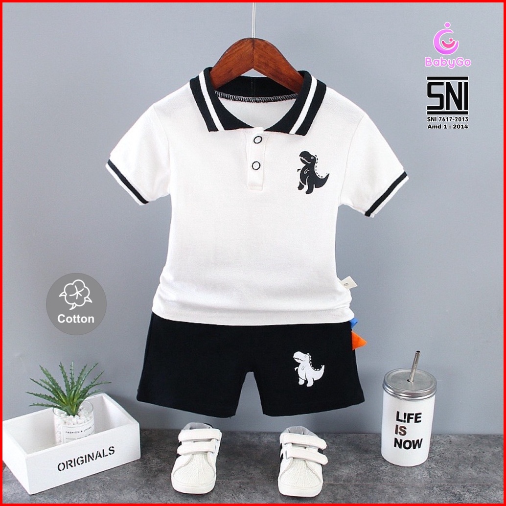 Babygo Setelan Anak Bayi Kerah Set Baju Anakk Kerah Laki Laki Motif Dino Sni 100 Cotton