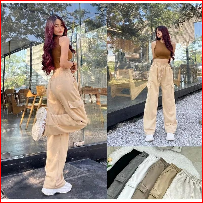 Celana Cargo Wanita Basic Polos Celana Panjang Wanita Kulot Training Cargo Wanita