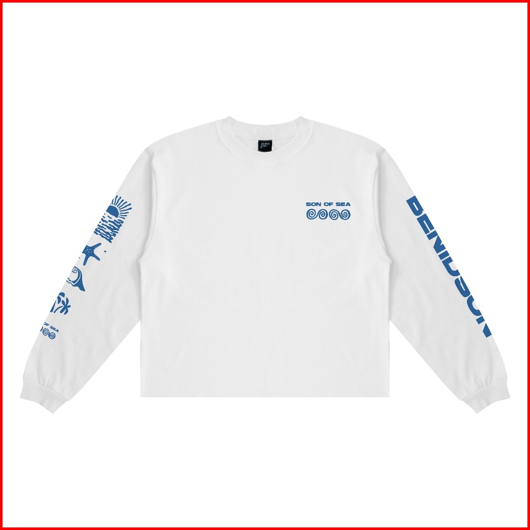 Benidson Kaos Boxy Lengan Panjang Oversized Son Of Sea Putih Katun 16s