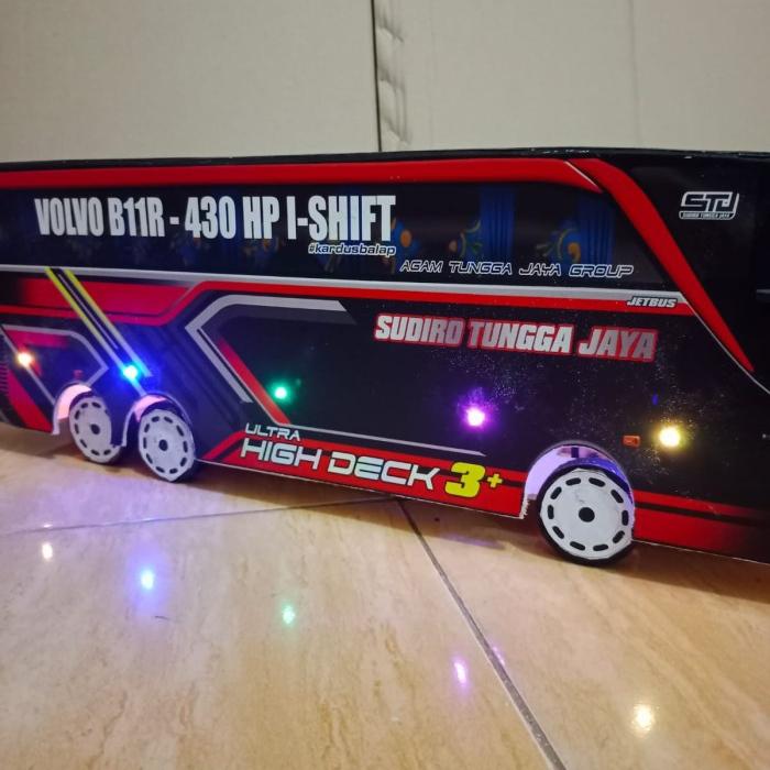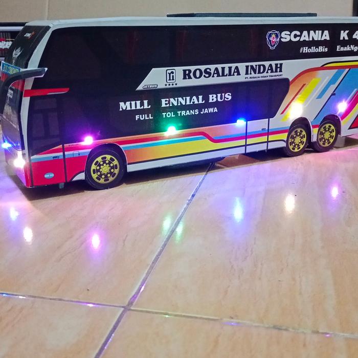 MINIATUR BUS DOBEL DEKER AKAP BAJURI ADA MUSIK TELOLET SAMA LAMPU - ROSALIA INDAH, MUSIK TELOLET