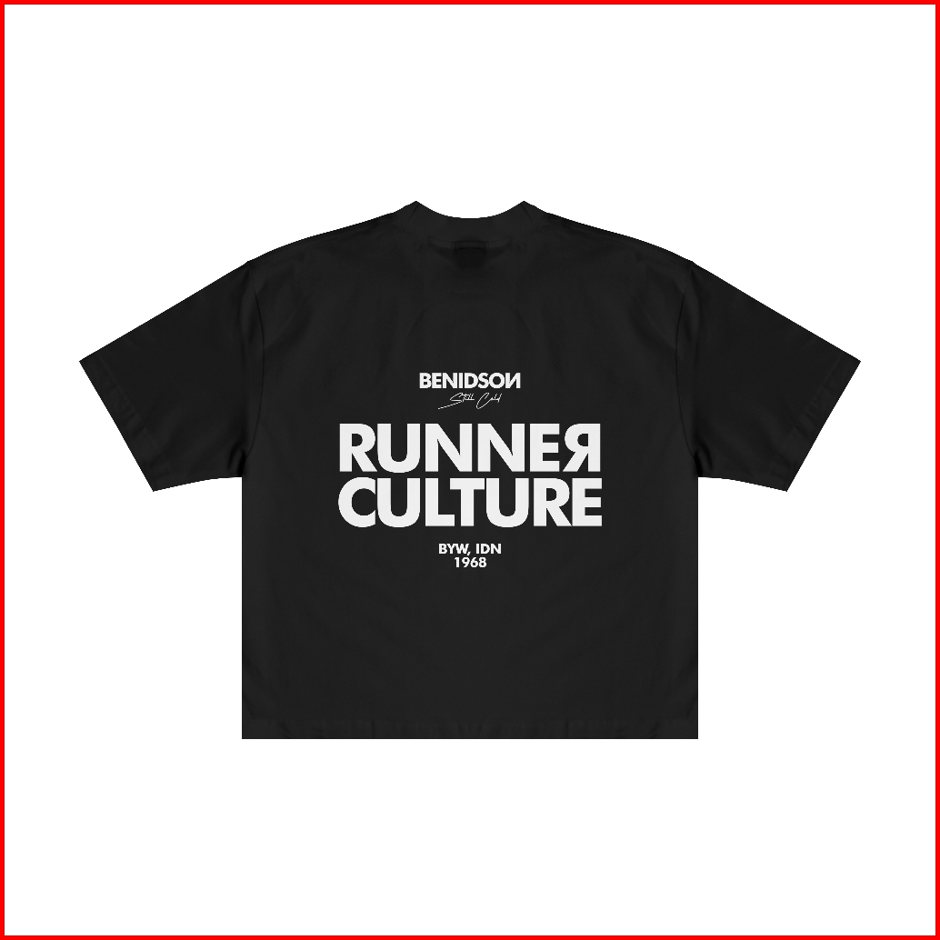 Benidson Kaos Boxy Oversized Runner Culture Hitam Katun 16s
