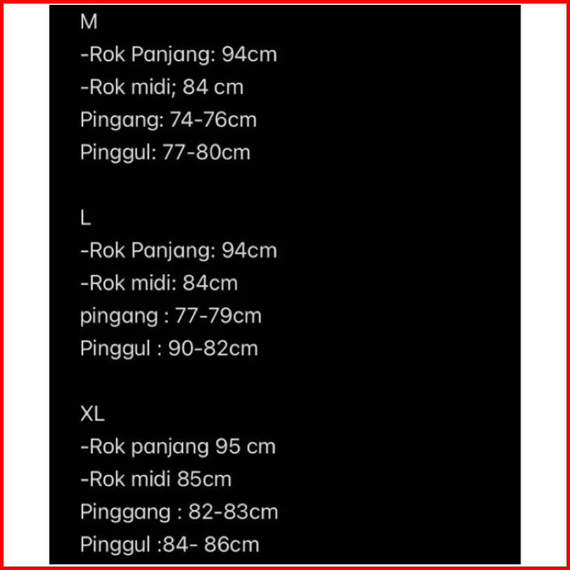Vanila Midi (84cm), Vanila Maxy (94cm), Cream Midi (84cm), Cream maxy (94cm), Coklat Midi (84cm), Coklat Maxy (94cm)