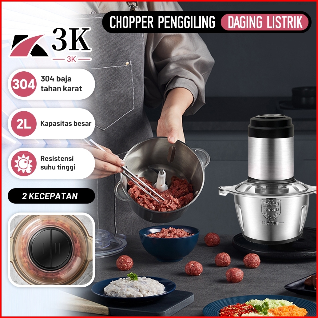 3k Surabaya Blender Chopper Bahan Stainless Steel Kapasitas 2l Penggiling Bumbu Daging Sayur Buah Food Processor