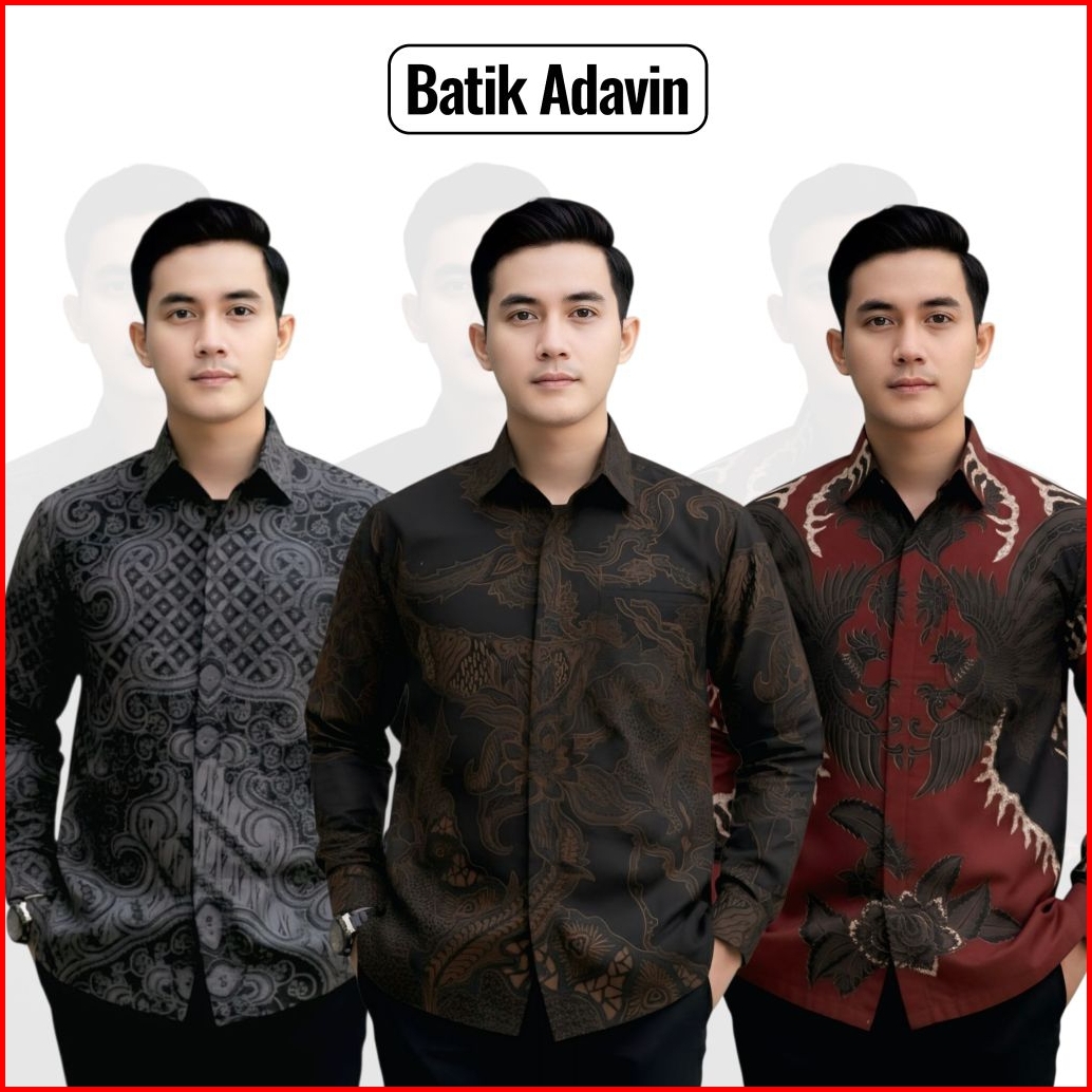 Batik Adavin Kemeja Batik Cowo Warna Burgundy Lylac Navy Adem Lembut Batik Lengan Panjang Exclusive