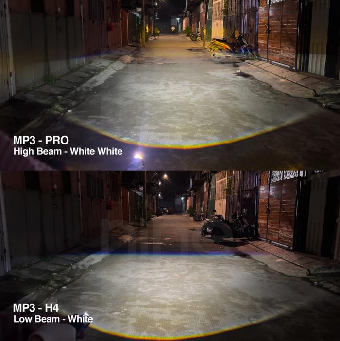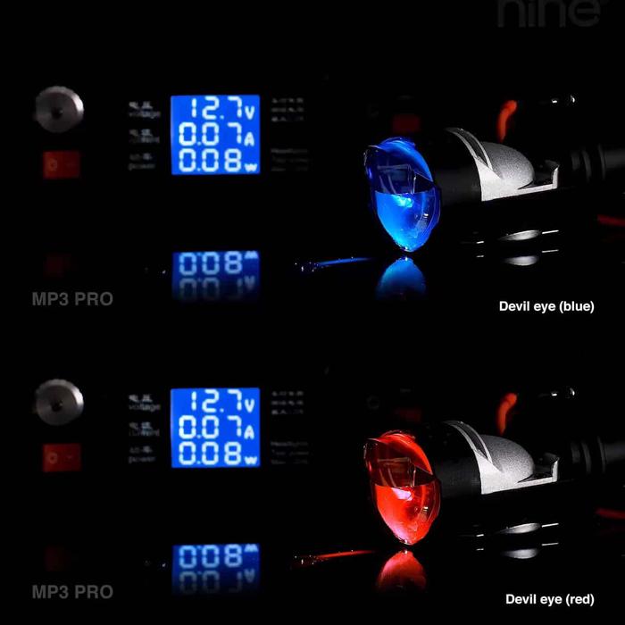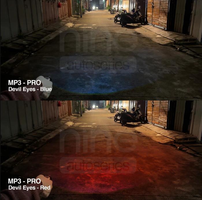 LED MOTOR HS1 H4 LUXIMOS MP3 PRO PROJEKTOR 50W 2WARNA PUTIH KUNING + DEVIL EYES BOHLAM LAMPU GARANSI - MP3 PRO PUTIH-KUNING DEVIL MERAH