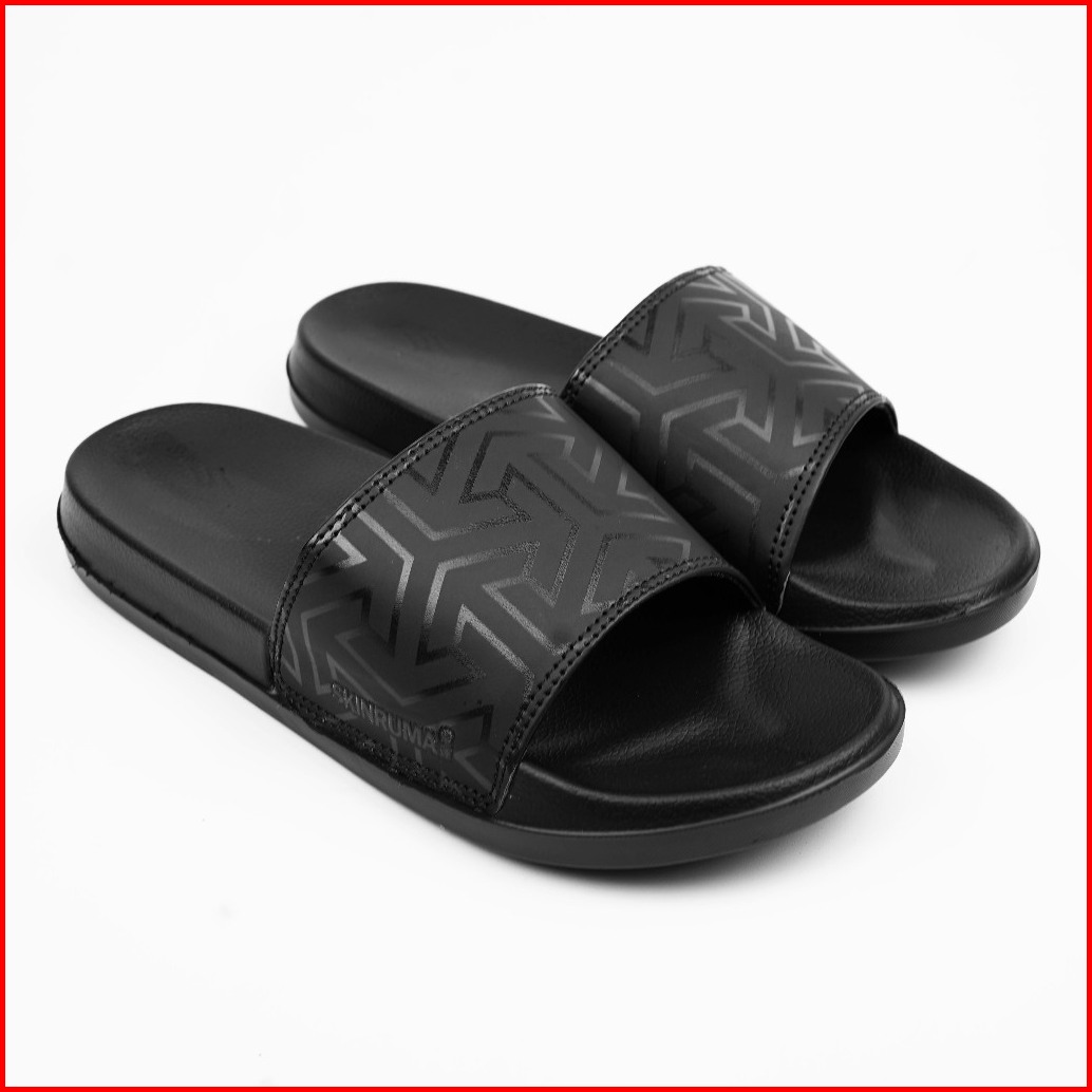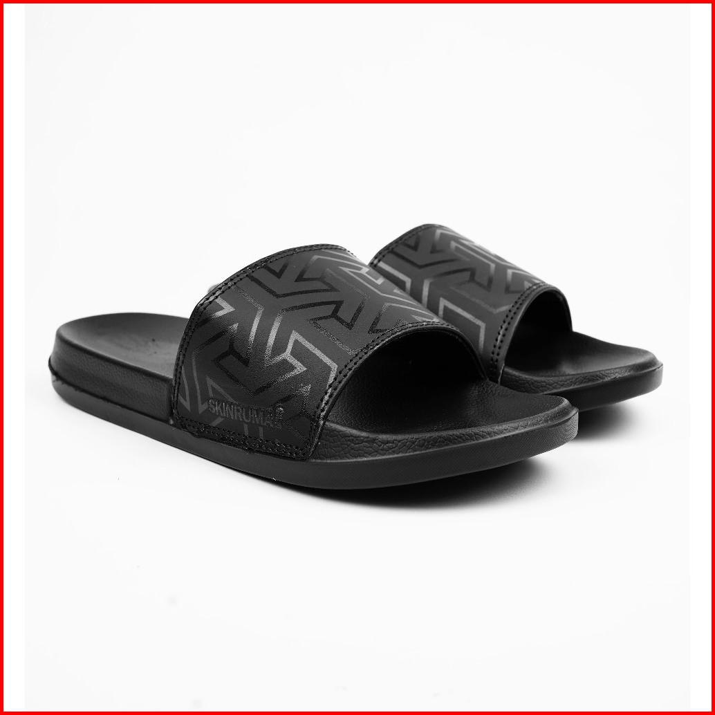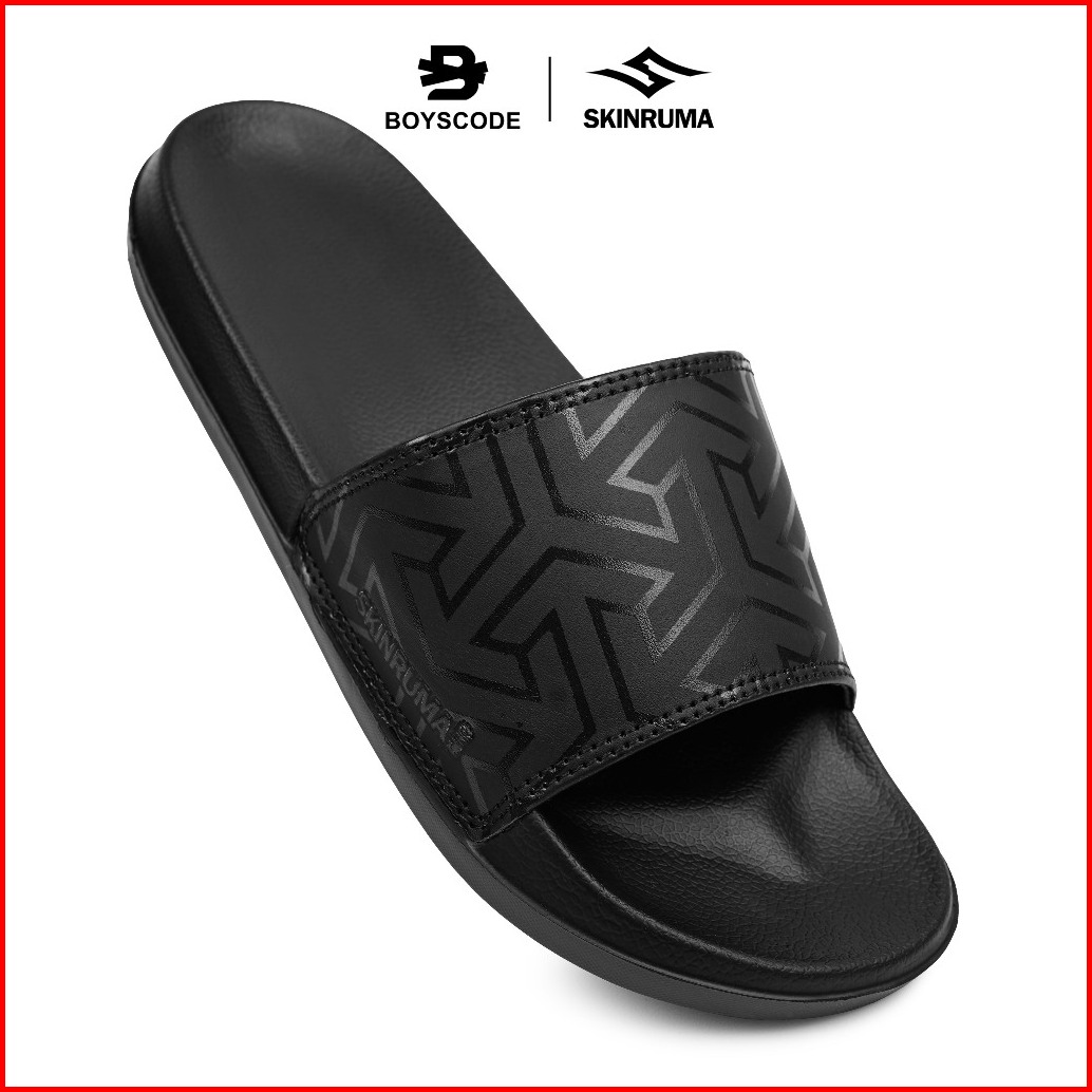 Boyscode Sendal Selop Karet Pria Wanita Skinruma Zig Zag Hitam Fullblack Slop Pria Slip On Pria Slide Pria