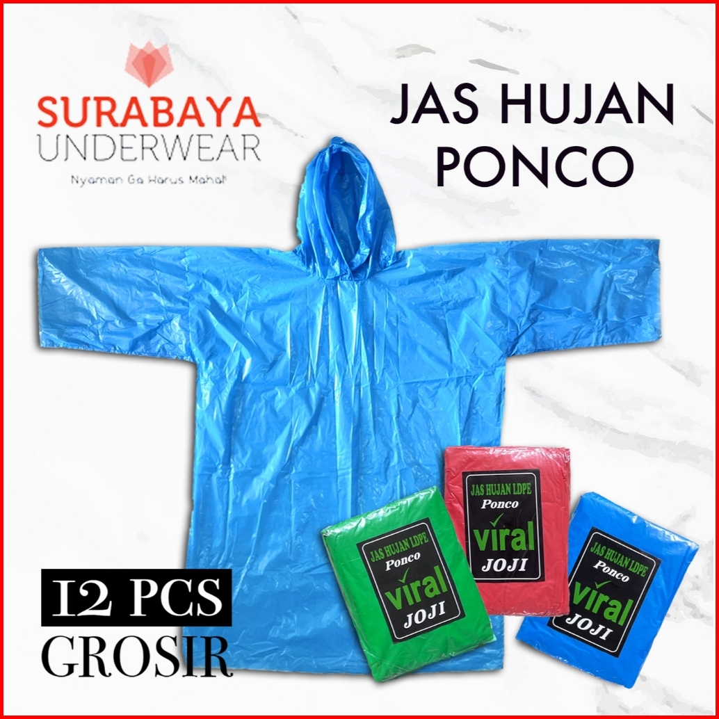 12 Pcs Jas Hujan Ponco Dewasa Plastik Tebal Viral Joji