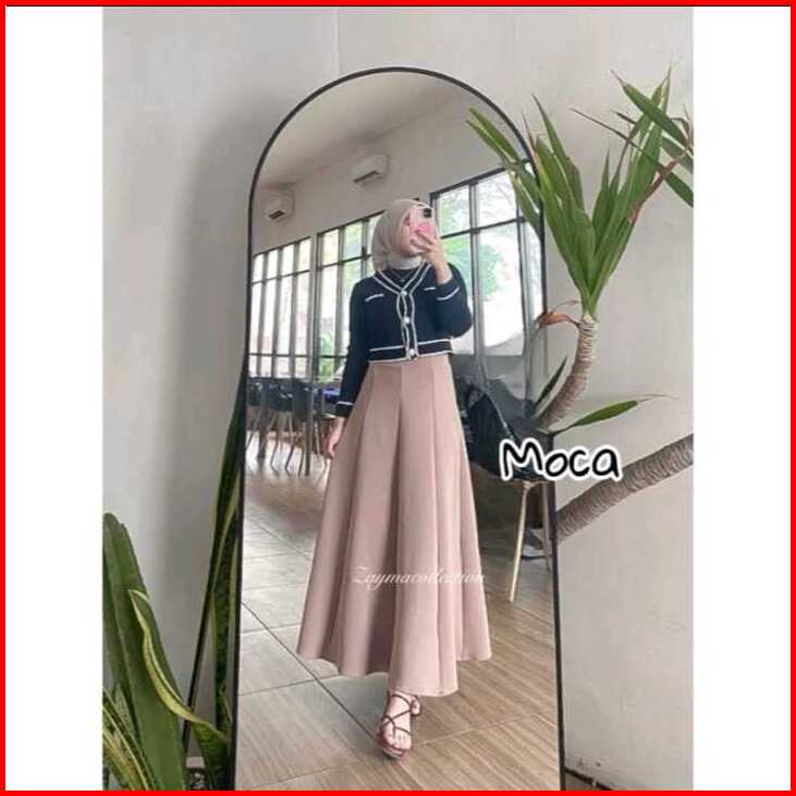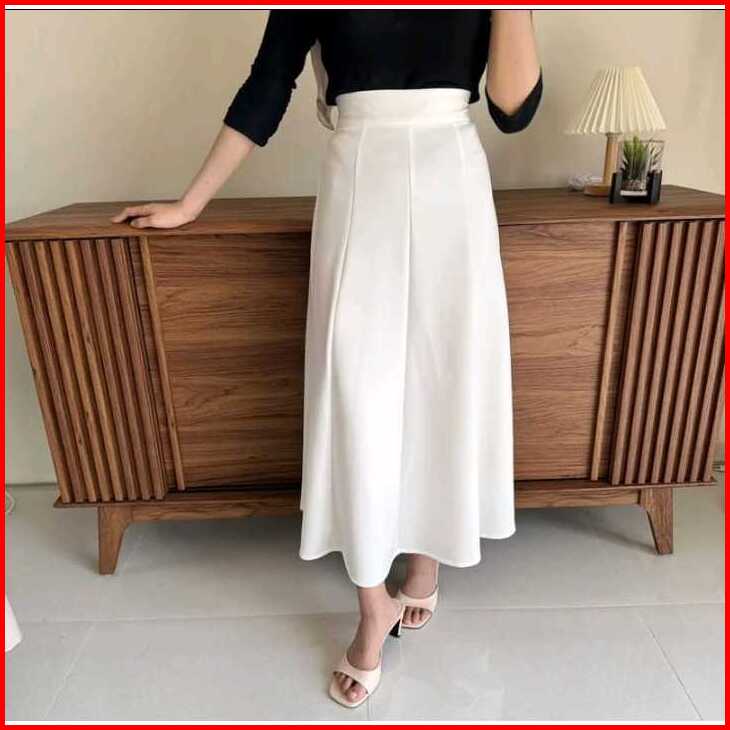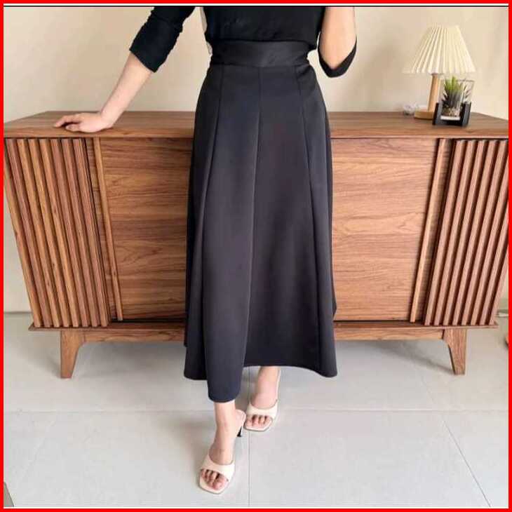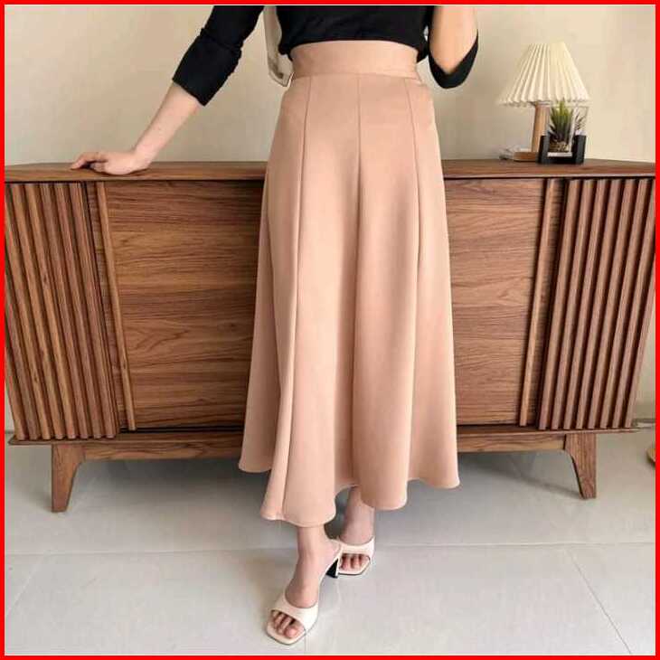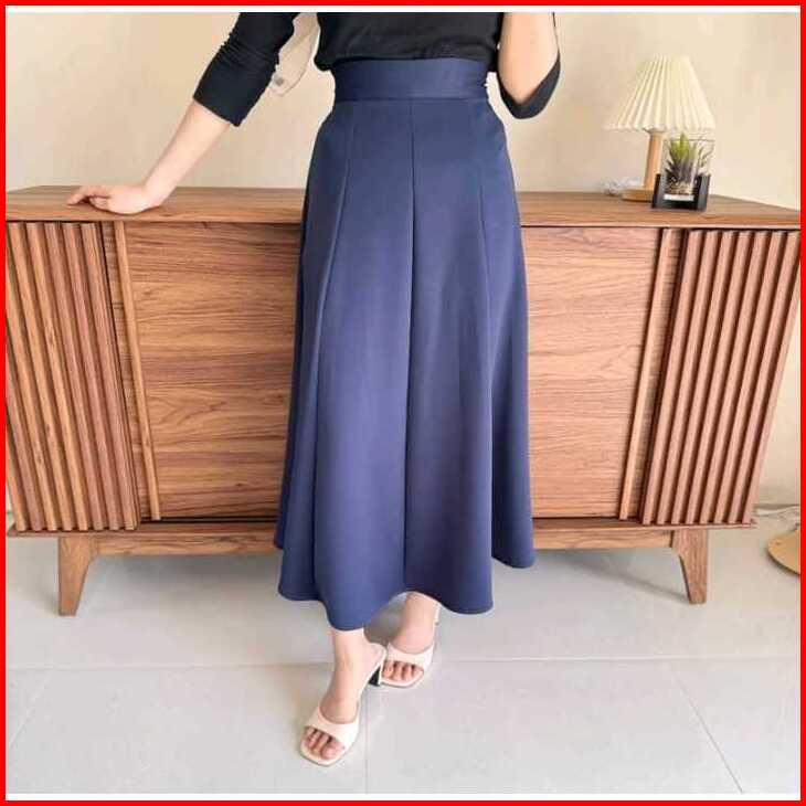 Audy Skirt - Korean Loose Maxi Skirt Rok Wanita Anti Kusut Scuba Panjang Casual Mini